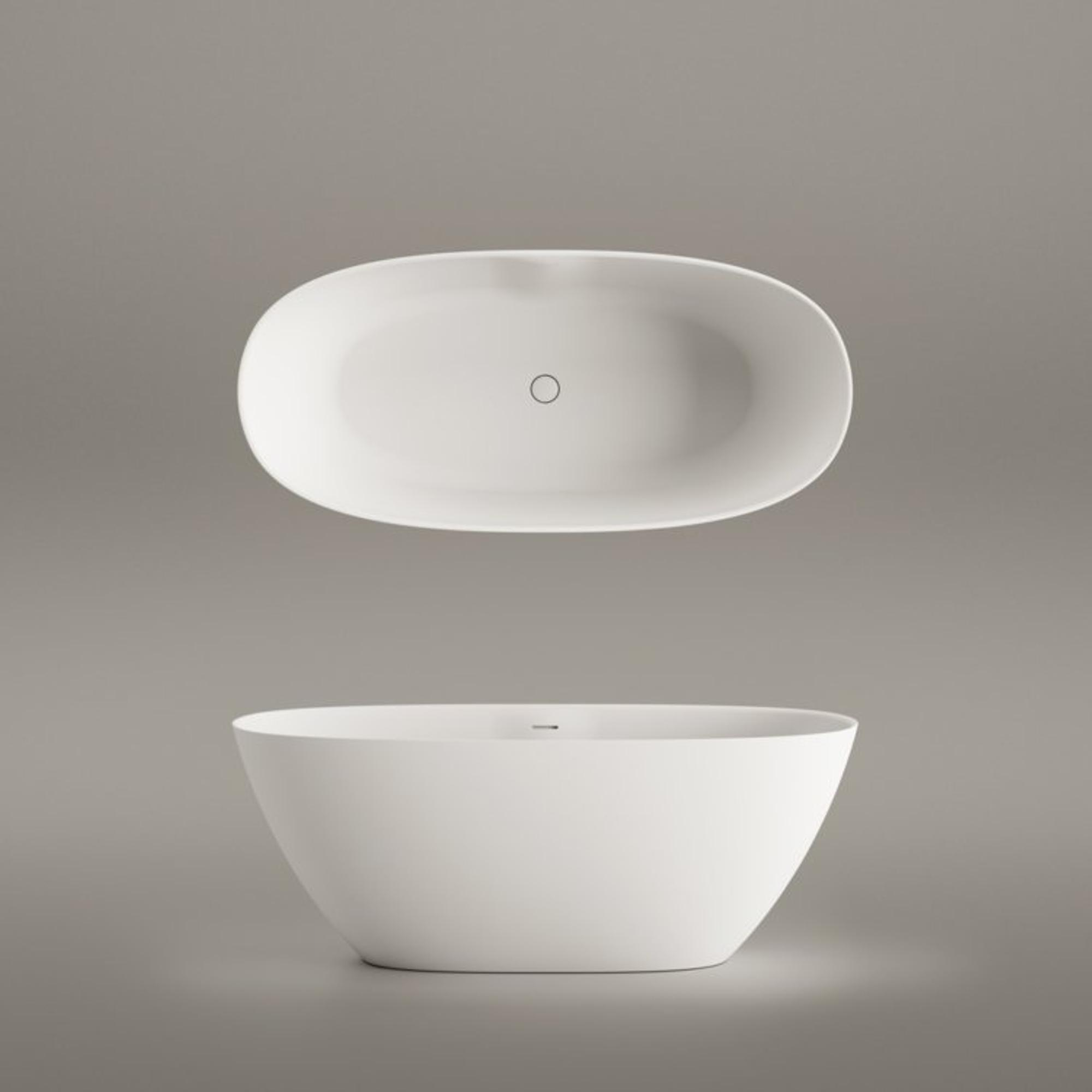 Zeza Element Vrijstaand Bad - 160x75x60cm - solid surface - mat licht grijs