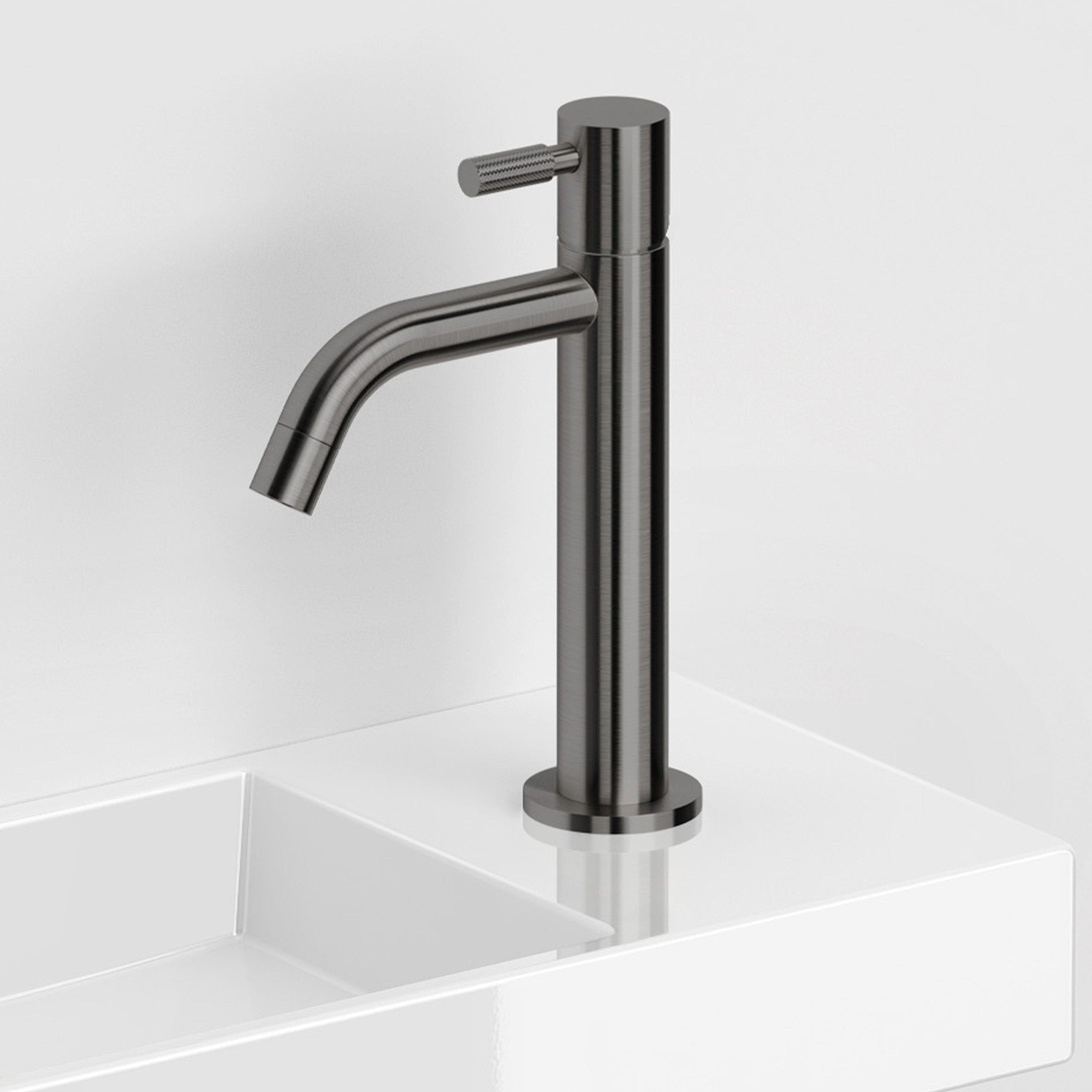 Elegantie voor de wastafel Deze Clou Xo wastafelmengkraan straalt elegantie uit met zijn slanke ontwerp en geborsteld gunmetal afwerking. Met een hoogte van 18,8 cm voegt deze kraan een vleugje stijl toe aan jouw wastafel. Het tijdloze design past perfect bij zowel moderne als klassieke badkamers, waardoor het een veelzijdige keuze is voor jouw badkamerupgrade.
