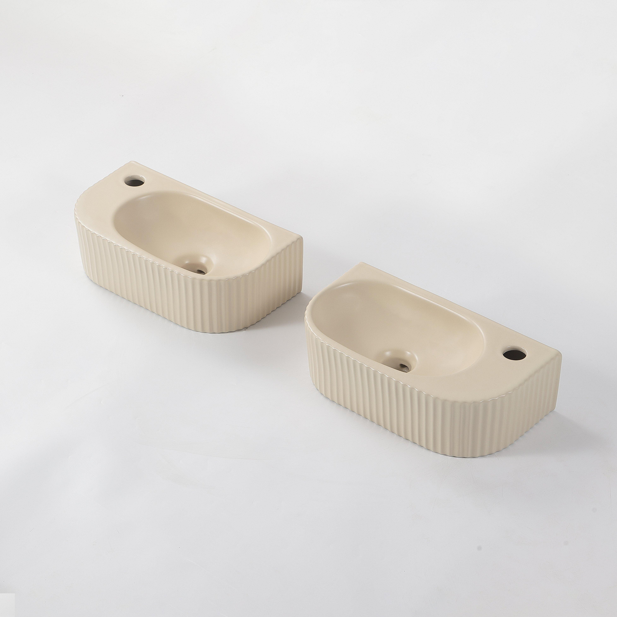 QeramiQ Blend Fontein - 40x22x12cm - Rechts - Geribbeld - halfrond - 1 kraangat - Keramiek - Beige mat