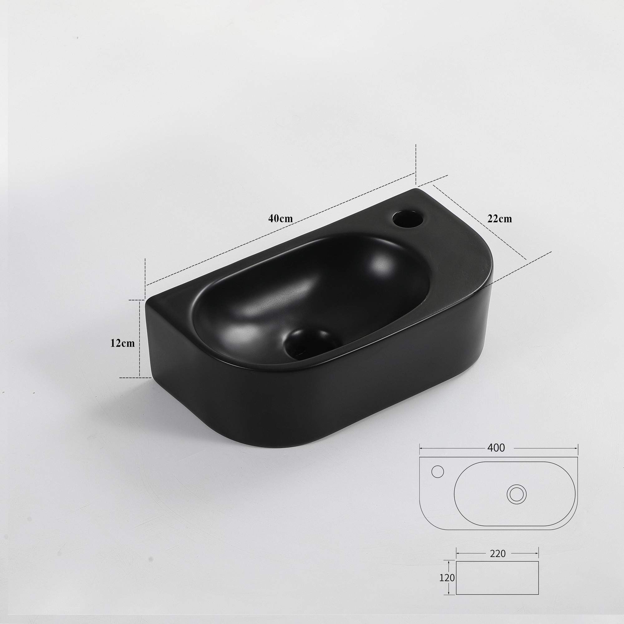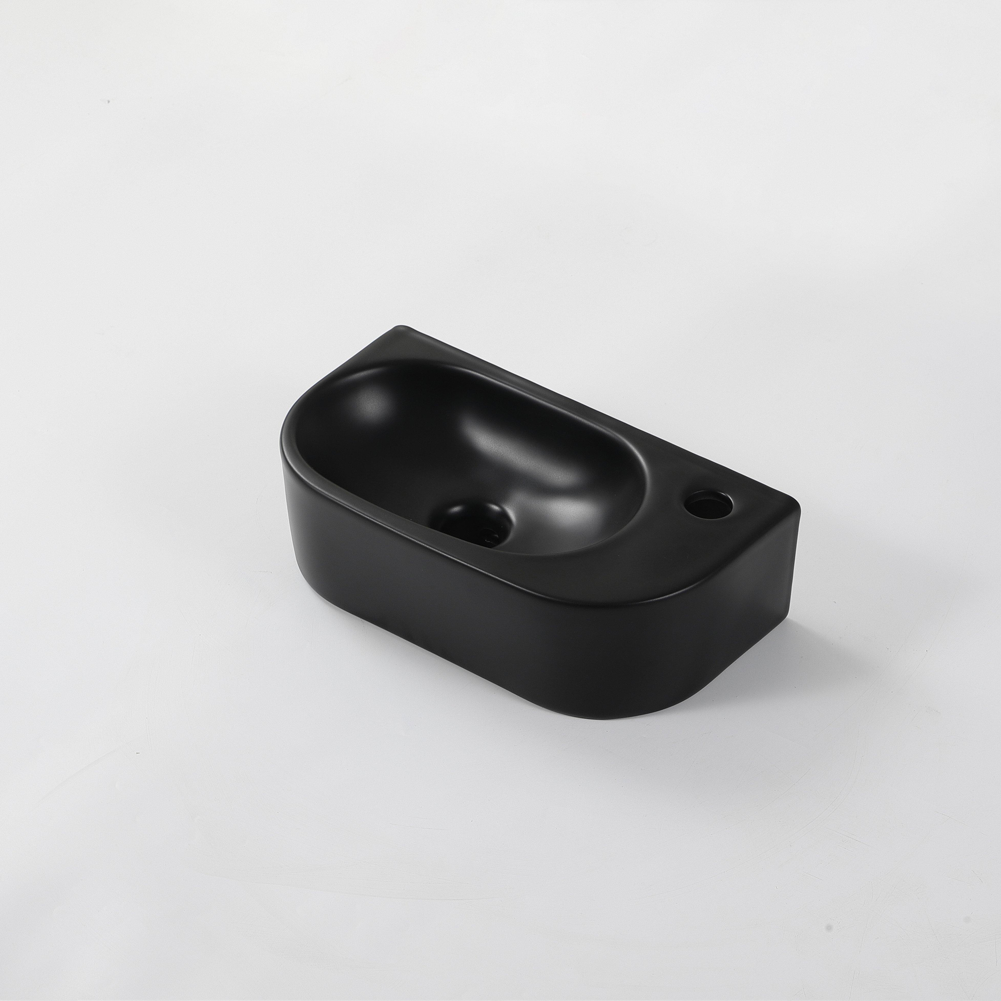 QeramiQ Pure Fontein - 40x22x12cm - Rechts - Glad - halfrond - 1 kraangat - Keramiek - Zwart mat