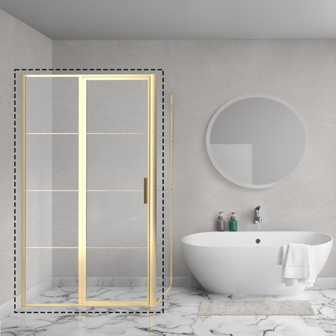 Aqua Vista Triple Draaideur met vast deel - 90x200 cm - 8mm - helder glas - onderdeel hoekcabine - geborsteld messing (goud)