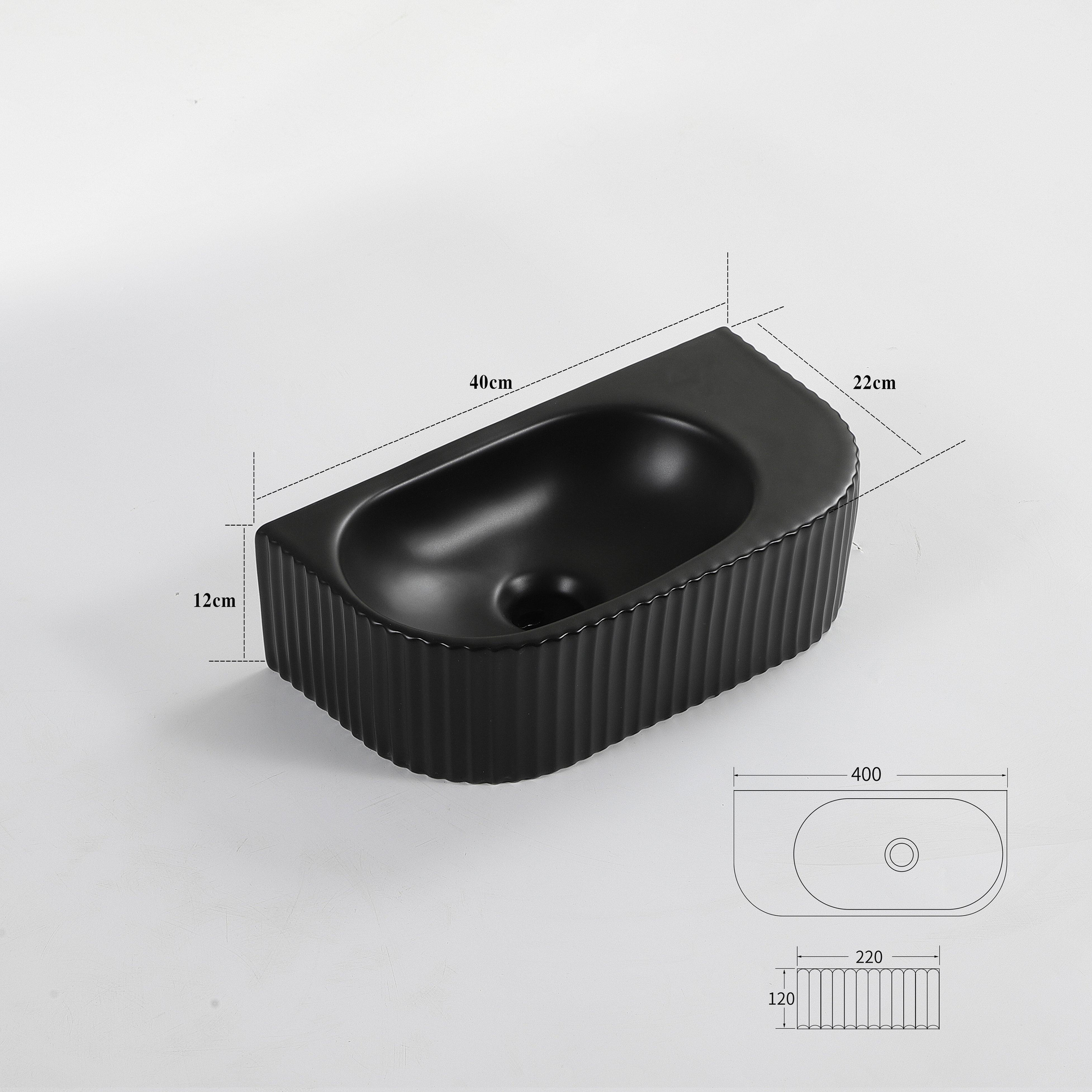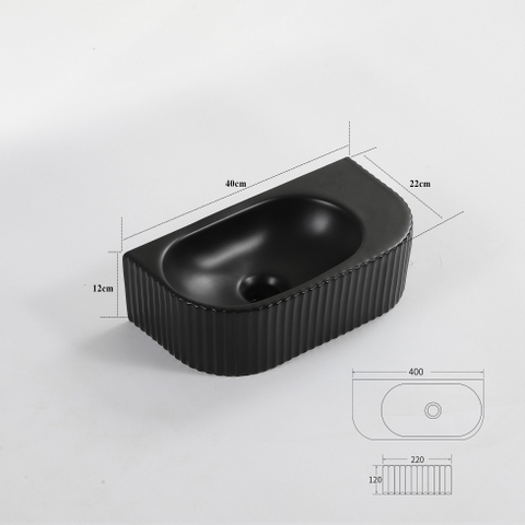QeramiQ Blend Fontein - 40x22x12cm - Geribbeld - halfrond - zonder kraangat - Keramiek - Zwart mat