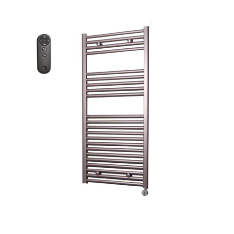 Sanicare HVS Elektrische Radiator - 111.8x45cm - 596W - met afstandsbediening - thermostaat - chroom - rechtsonder - inox look (zilver)
