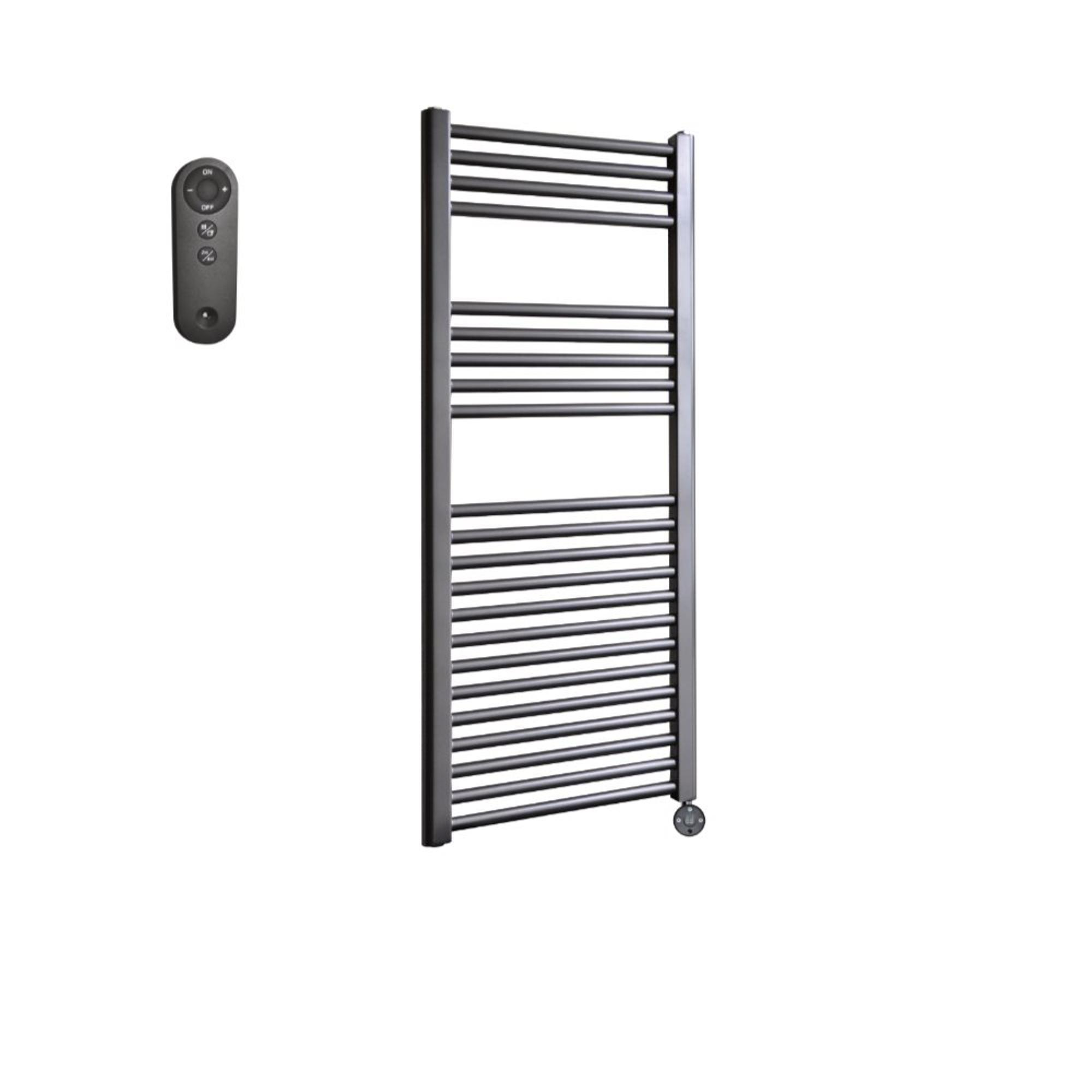 Sanicare HVS Elektrische Radiator - 111.8x45cm - 596W - met afstandsbediening - thermostaat - zwart - rechtsonder - gunmetal (antraciet)