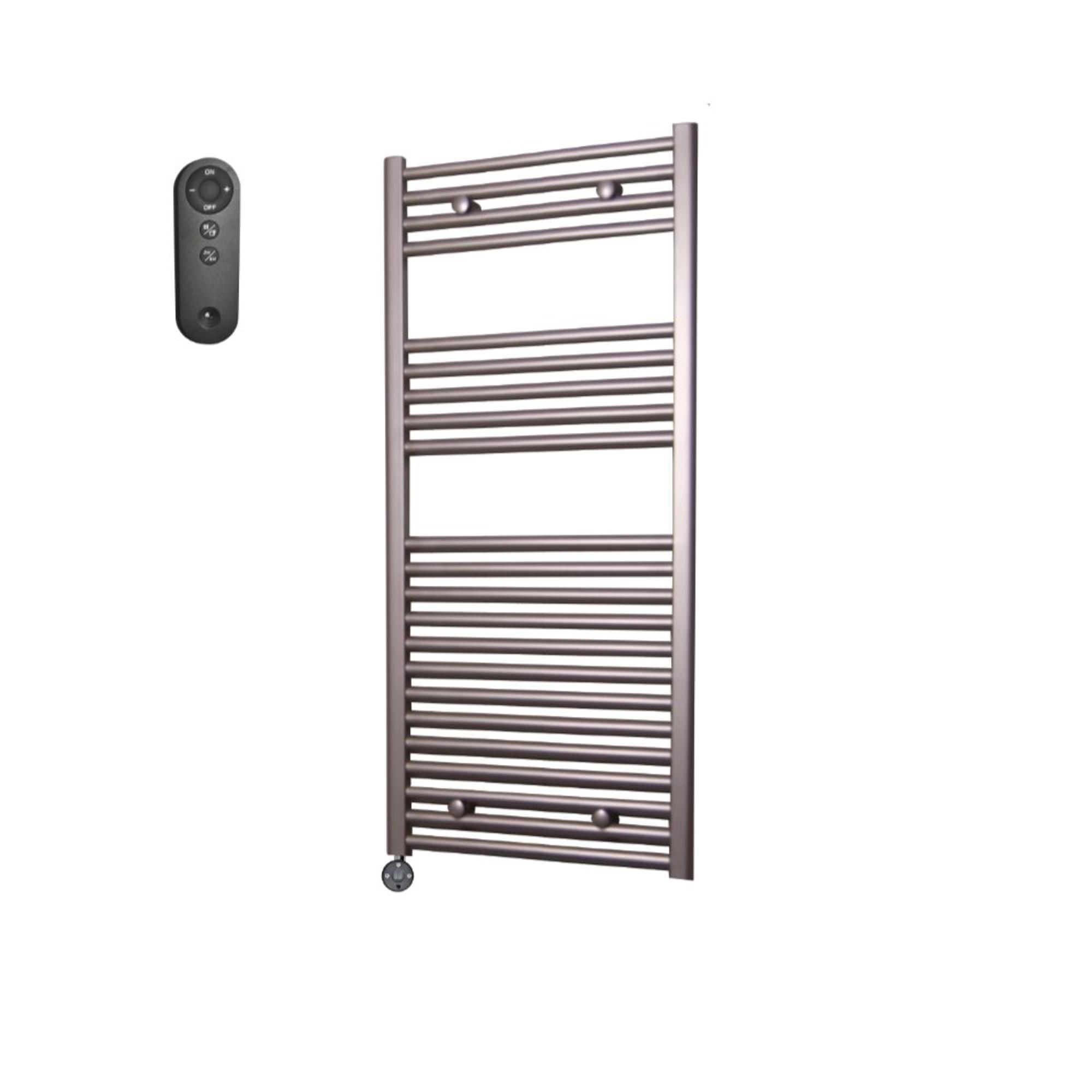 Sanicare HVS Elektrische Radiator - 111.8x45cm - 596W - met afstandsbediening - thermostaat - zwart - linksonder - inox look (zilver)