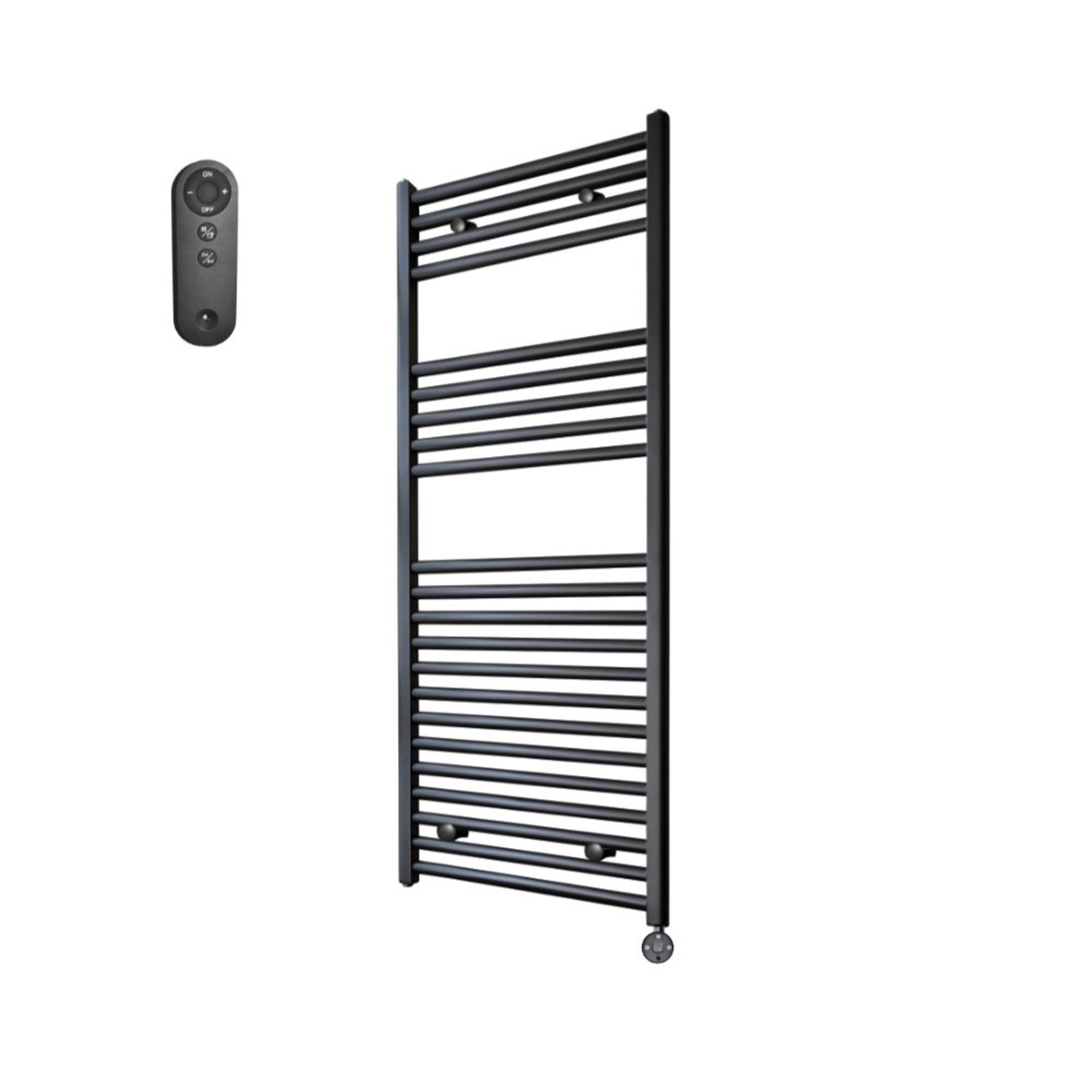 Sanicare HVS Elektrische Radiator - 111.8x45cm - 596W - met afstandsbediening - thermostaat - zwart - rechtsonder - mat zwart