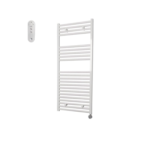 Sanicare HVS Elektrische Radiator - 111.8x60cm - 730W - met afstandsbediening - thermostaat - chroom - rechtsonder - wit