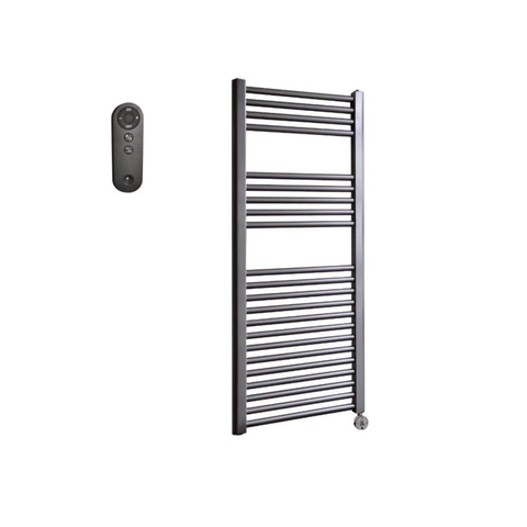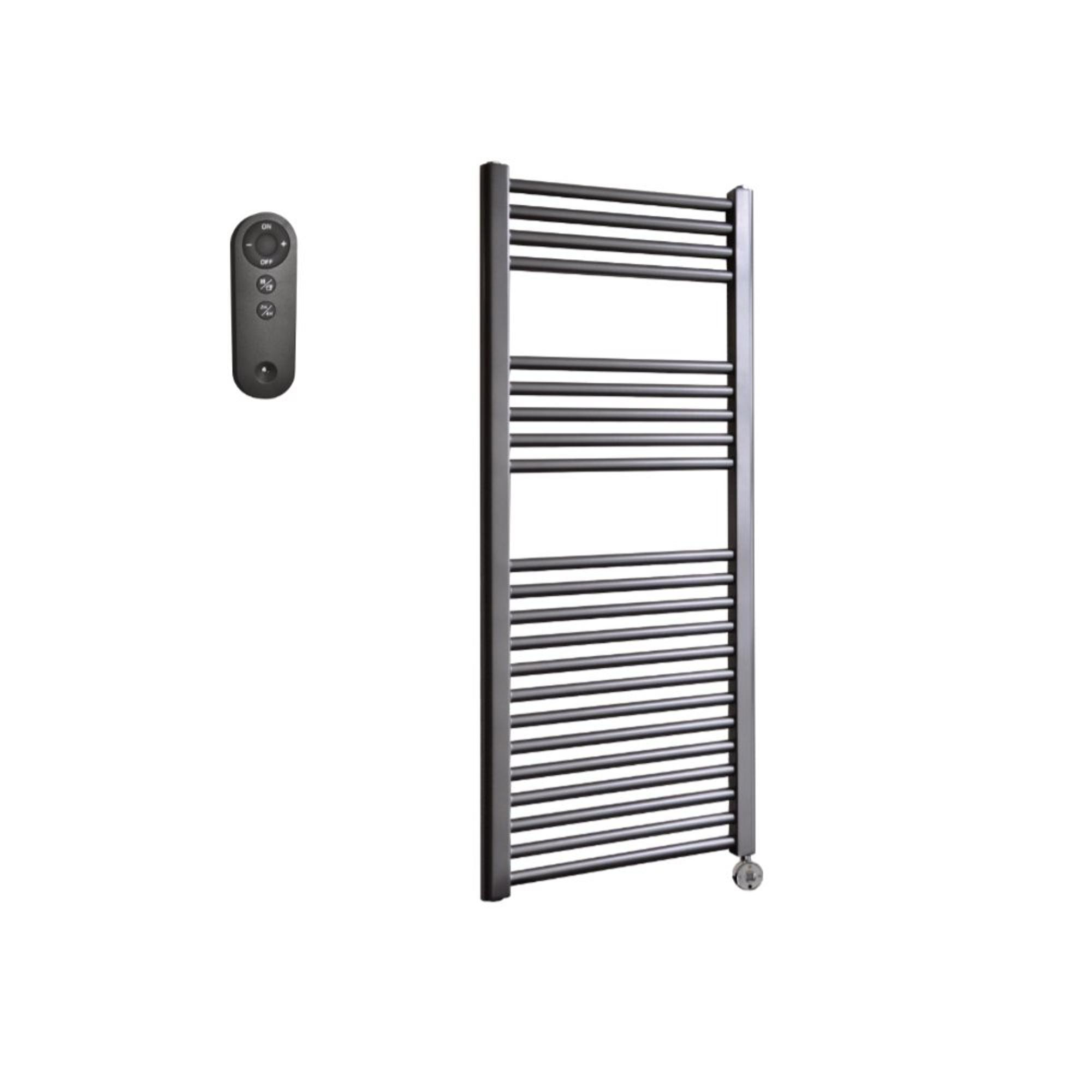 Sanicare HVS Elektrische Radiator - 111.8x60cm - 730W - met afstandsbediening - thermostaat - chroom - rechtsonder - gunmetal (antraciet)