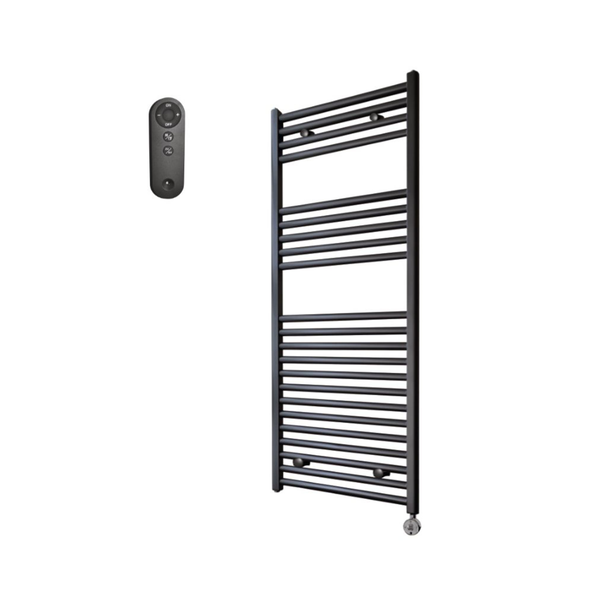 Sanicare HVS Elektrische Radiator - 111.8x60cm - 730W - met afstandsbediening - thermostaat - chroom - rechtsonder - mat zwart