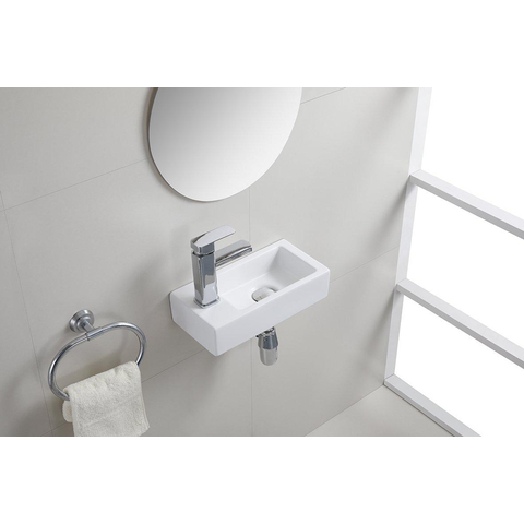 Wiesbaden Rhea mini fontein links 36,5 x 18 x 9 cm keramiek mat wit TWEEDEKANS