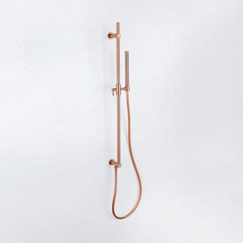 Fugaflow Eccelente Sobrado Glijstangset - geïntegreerde wandaansluitbocht - doucheslang glad- staaf handdouche - Geborsteld koper PVD (Koper)