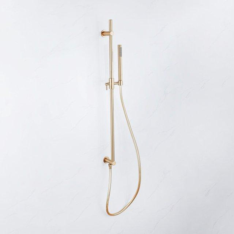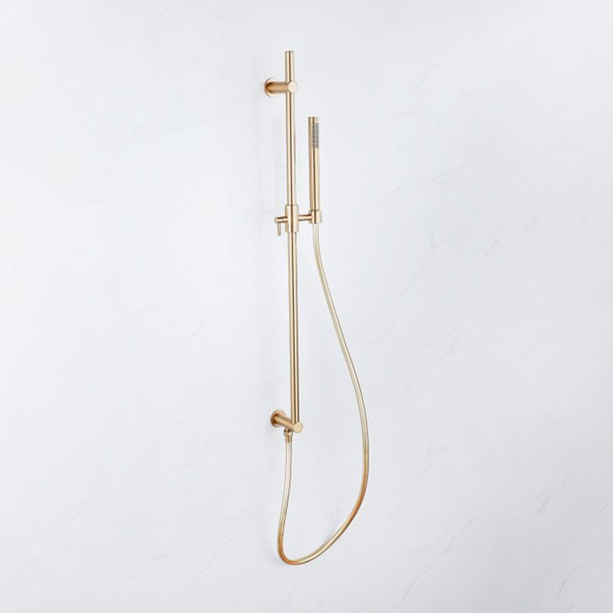 Fugaflow Eccelente Sobrado Glijstangset - geïntegreerde wandaansluitbocht - doucheslang glad- staaf handdouche - Geborsteld Messing PVD (Goud)