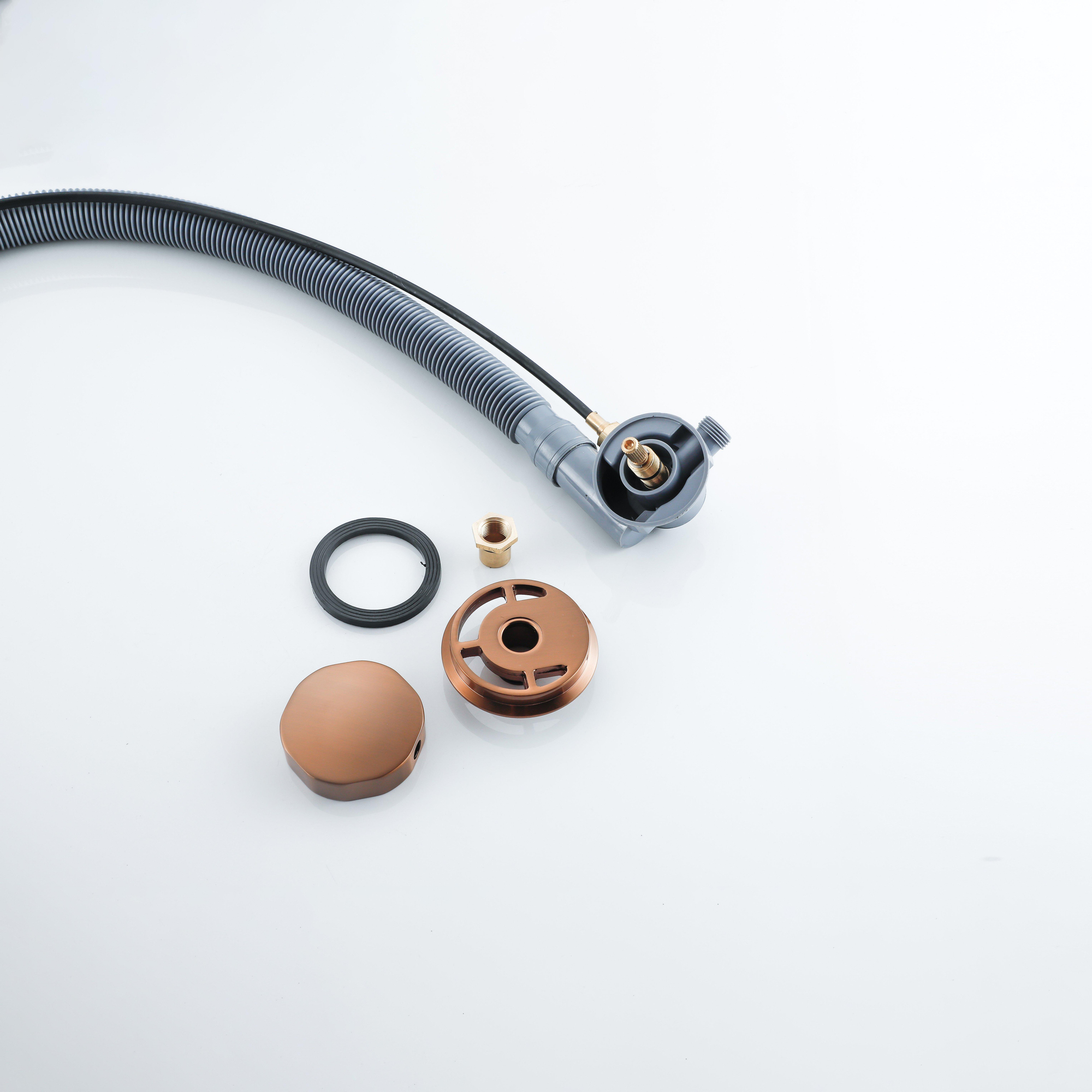 Met zijn strakke lijnen en eigentijdse uitstraling past de Fortifura Calvi badafvoer opbouw perfect in moderne badkamers. Het geborsteld koperen oppervlak geeft een luxe en trendy uitstraling, terwijl de draaibediening en vulfunctie een vleugje innovatie toevoegen aan het ontwerp. Deze badafvoer combineert functionaliteit met design, waardoor het een essentieel element wordt in elke eigentijdse badkamer.