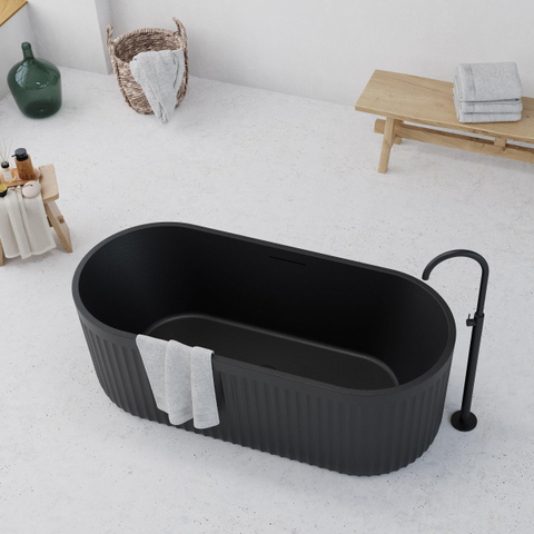 ARCHTEC-BLK Vrijstaand Bad - 170x75x60cm - Rock Texture - overloopgat - klikwaste - met verstelbare poten - zwart