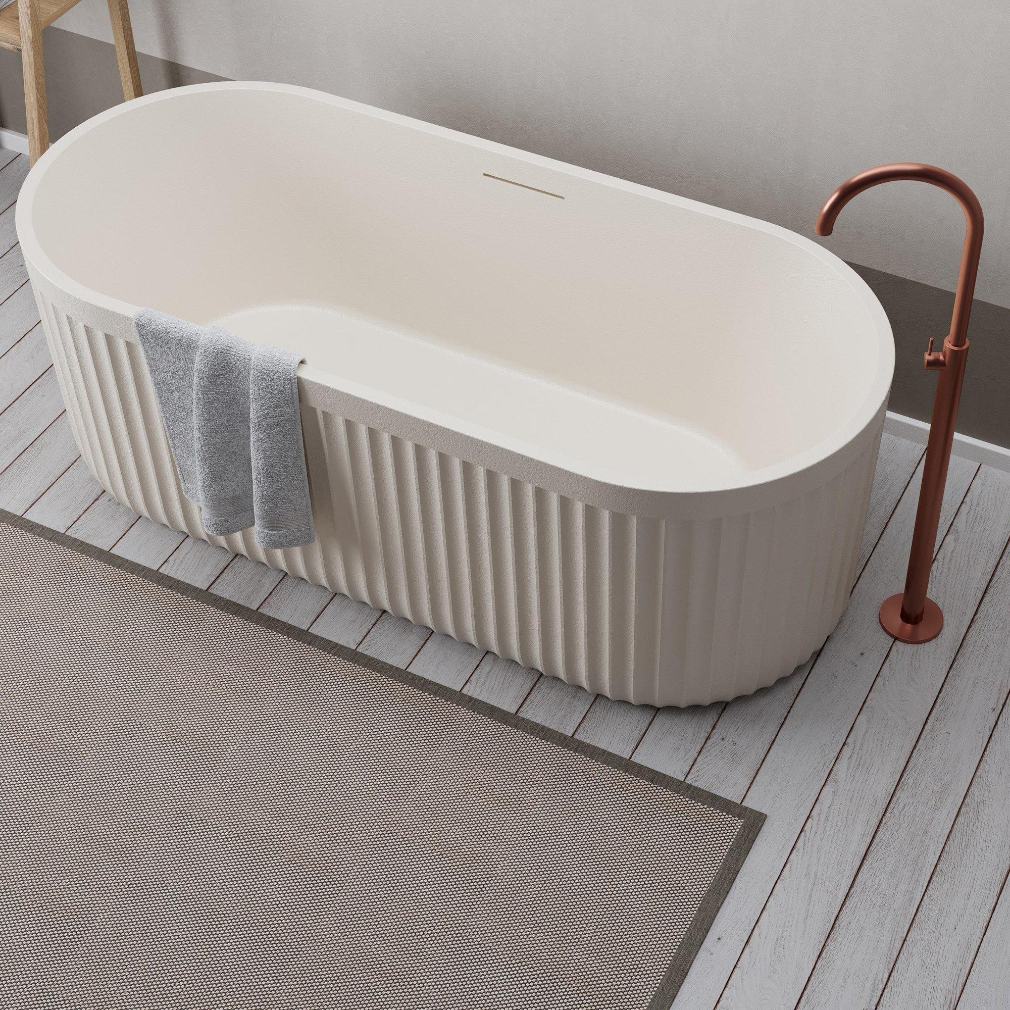 Ideavit ARCHTEC-CRM Vrijstaand Bad - 170x75x60cm - Rock Texture - overloopgat - klikwaste - verstelbare poten - Crème beige