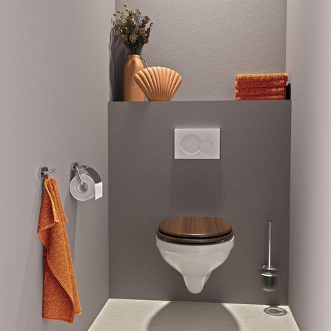 De warme walnoot-afwerking geeft deze toiletzitting een natuurlijke en luxe uitstraling die direct opvalt. Het houtstructuurdesign voegt karakter toe aan je badkamer en zorgt voor een tijdloze sfeer. Hierdoor past deze bril moeiteloos in uiteenlopende interieurstijlen, van strak modern tot klassiek landelijk. Met zo’n stijlvol detail maak je van je toilet een plek waar je met plezier even zit, en dat draagt bij aan een complete en verzorgde badkamerbeleving.
