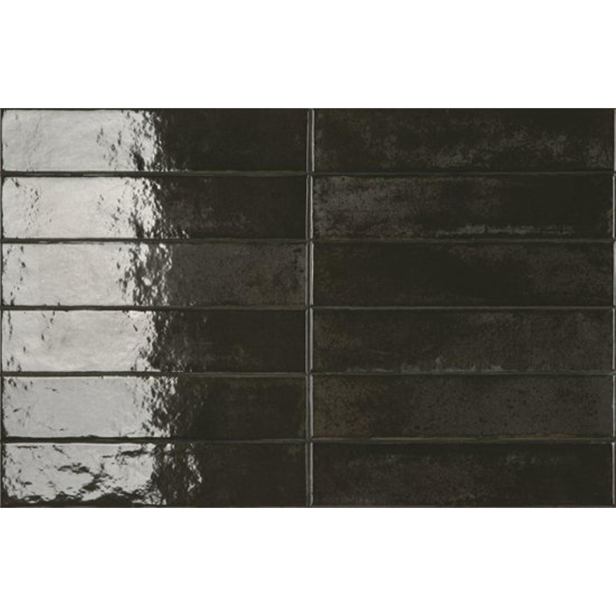 SAMPLE Ceramic-Apolo Raku Wandtegel - 6X27cm - 7,7mm - Rechthoek - Black Lava Glans