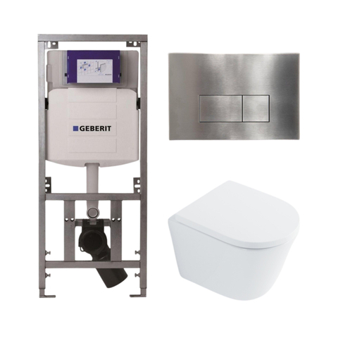 QeramiQ Dely Toiletset - 36.3x51.7cm - diepspoel - rimless - Geberit UP320 inbouwreservoir - met Burda frame - softclose toilet zitting 35 mm - steel bedieningsplaat - rechthoekige knoppen - wit glans