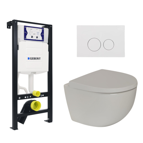 Plieger Zano Toiletset - UP320 inbouwreservoir - wandcloset - compact - zitting - softclose - witte bedieningsplaat - ronde knoppen - wit