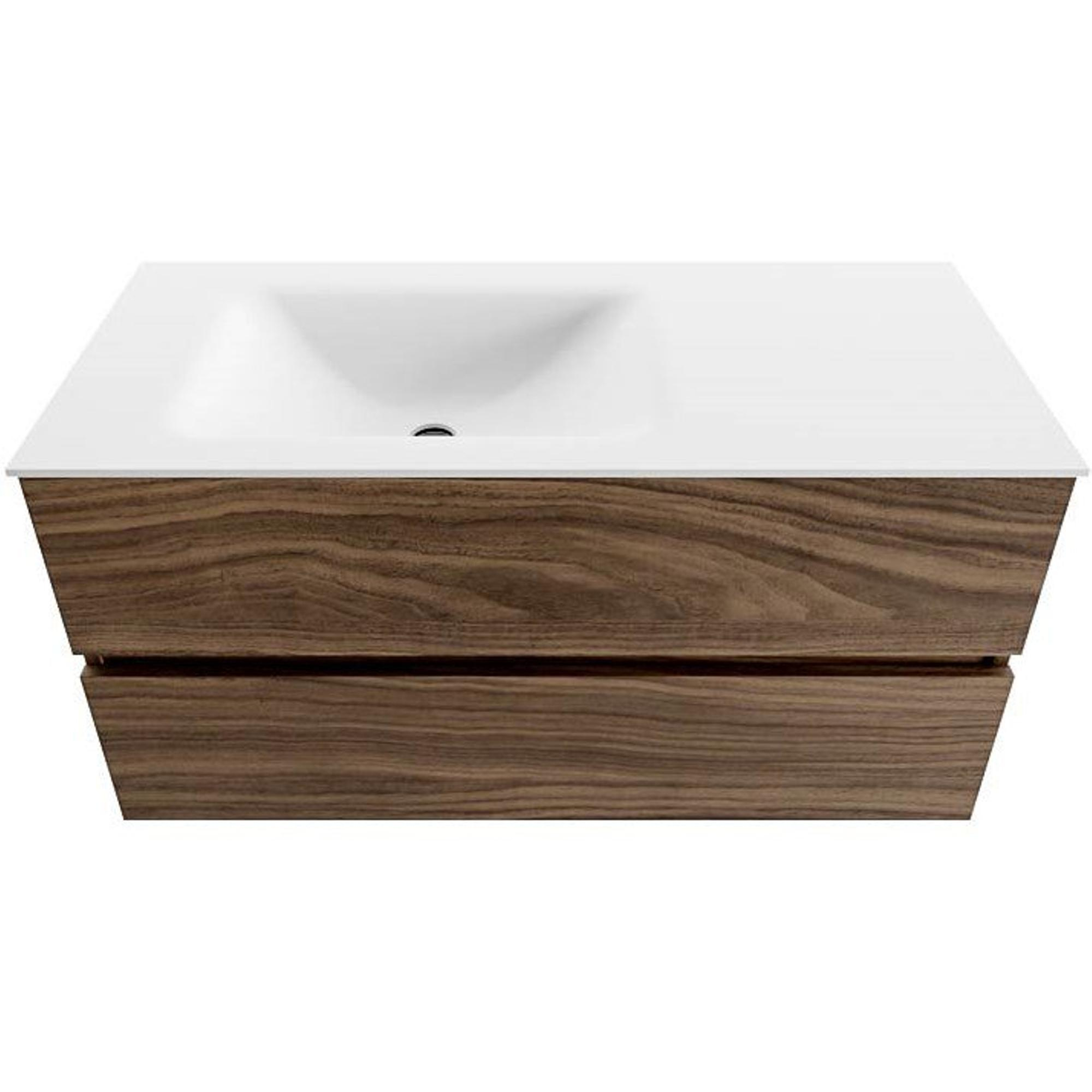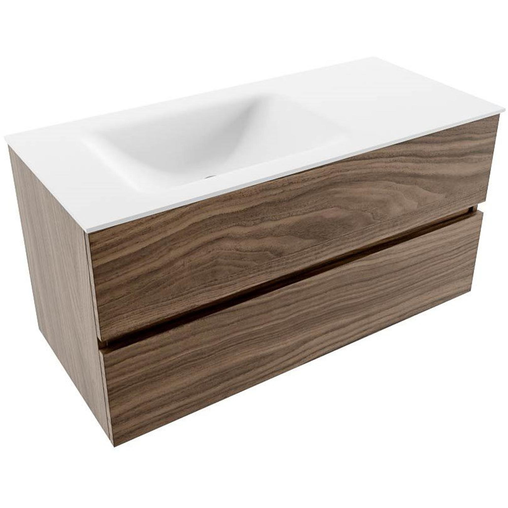MONDIAZ VICA Badkamermeubelset - 100x50cm - 2 lades - Mocha - wastafel CLOUD links - zonder kraangat - Talc