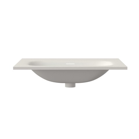 Gemaakt van hoogwaardig solid surface materiaal, is deze meubelwastafel niet alleen stijlvol, maar ook duurzaam en onderhoudsvriendelijk. Het materiaal is bestand tegen krassen, vlekken en verkleuring, waardoor het meubelstuk er jarenlang als nieuw blijft uitzien. De afwezigheid van kraangaten in het midden geeft een strakke en moderne uitstraling aan de wastafel.