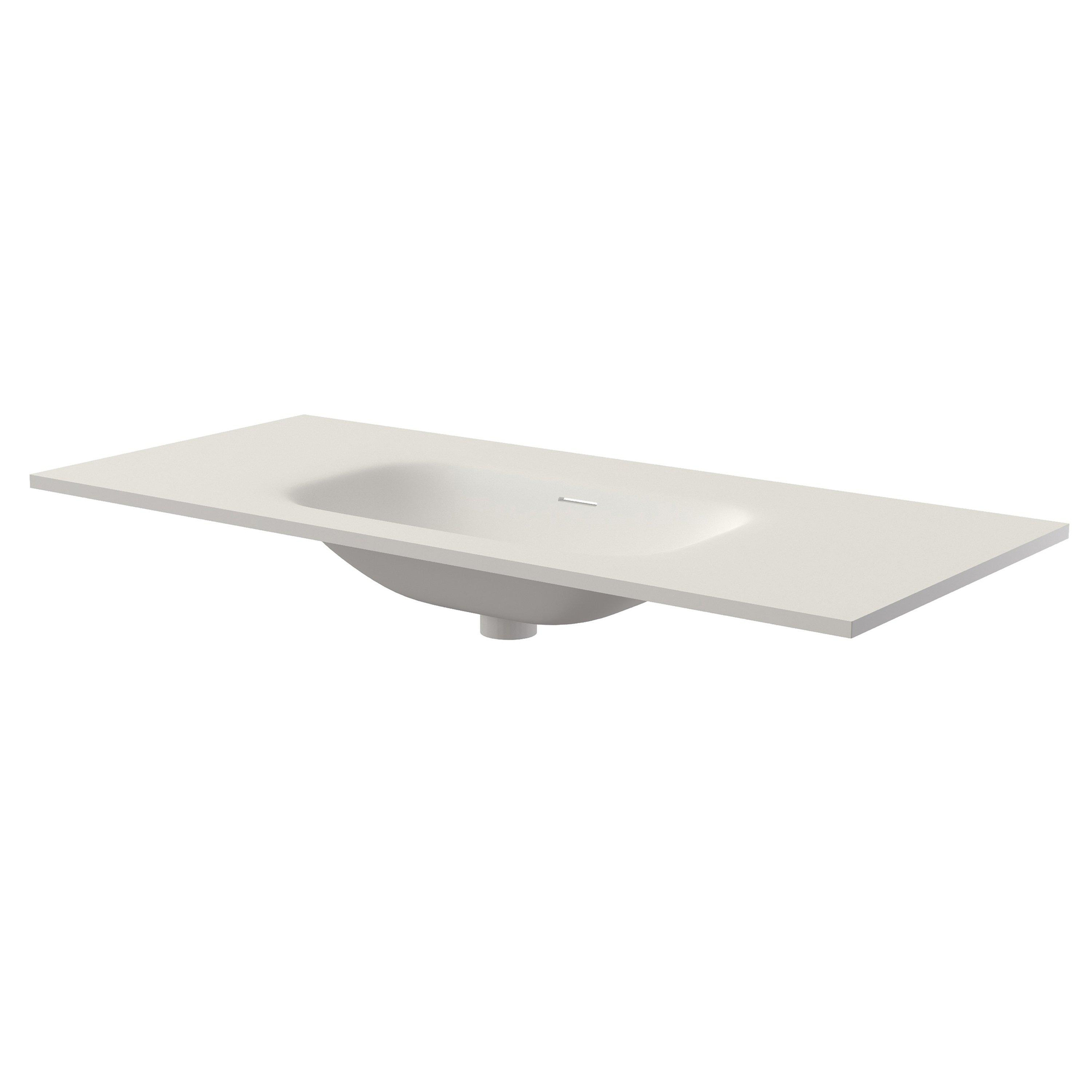 Saniclass Flow Meubelwastafel - 101x46x1.5cm - overloop - 1 wasbak midden - zonder kraangaten - solid surface wit mat