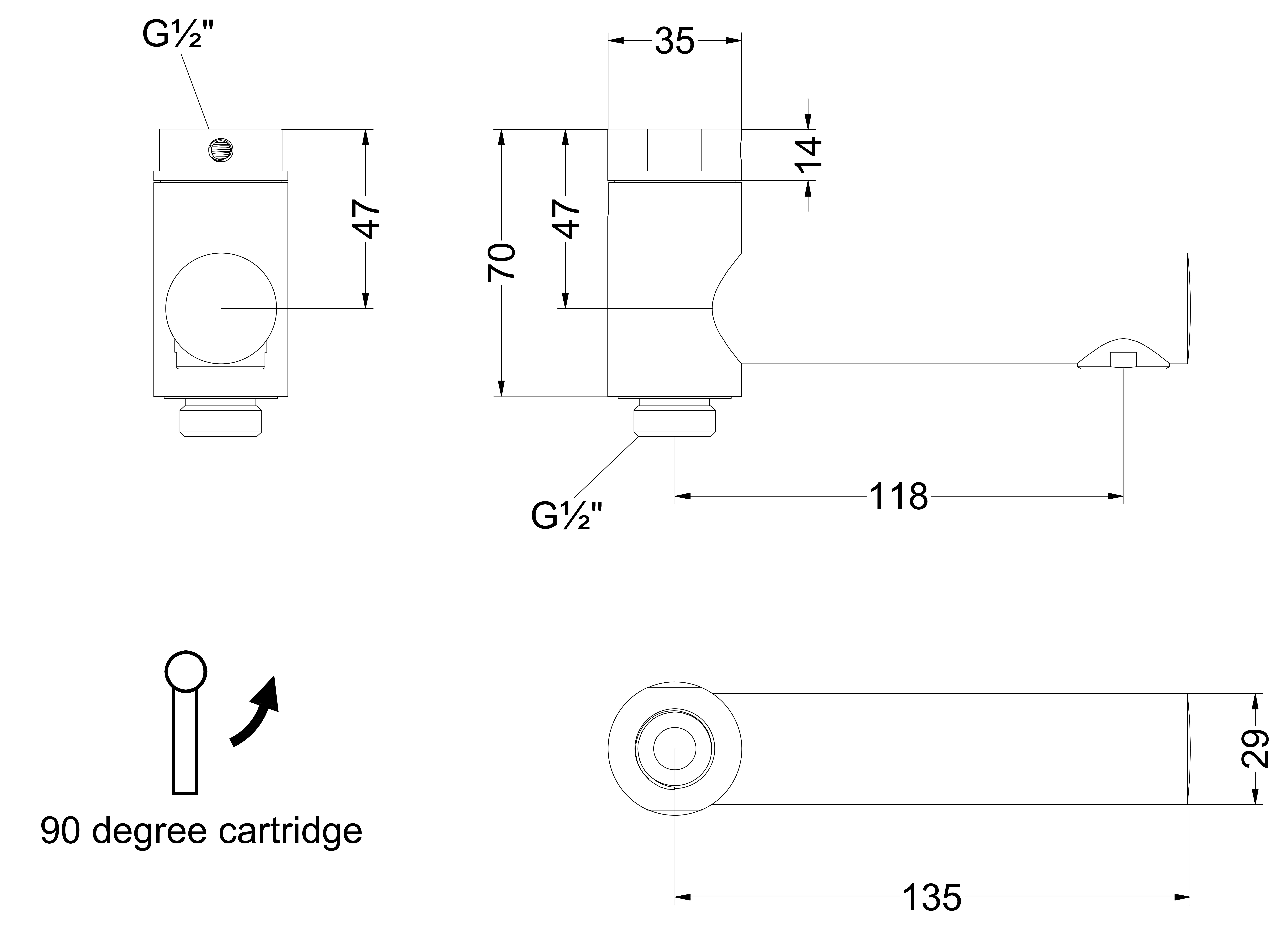MAY Toebehoren Baduitloop voor regendoucheset 1/2" aansluiting Geborsteld mat koper PVD