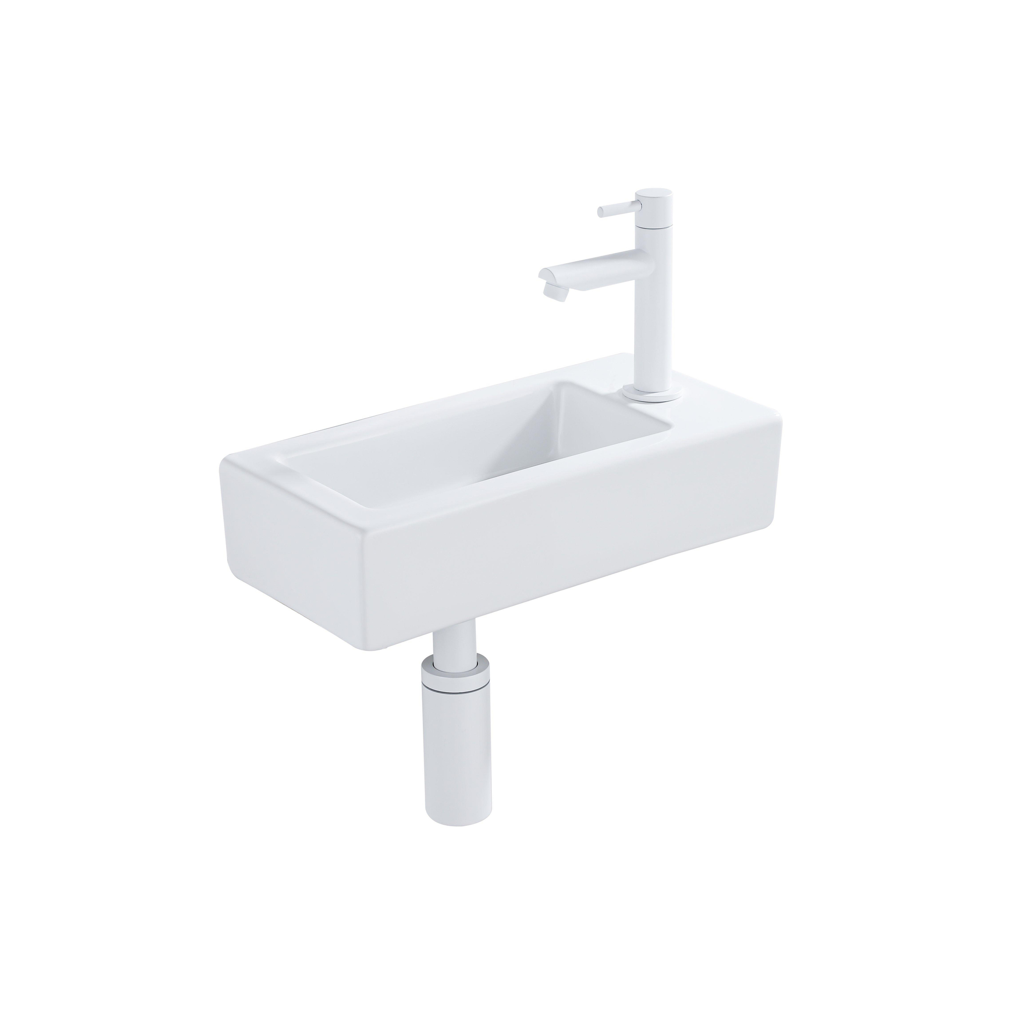 QeramiQ Fuente Fonteinset - 37.5x18.5x9cm - keramiek - kraangat rechts - fonteinkraan mat wit - afvoerplug - verlaagd sifon - Glans wit