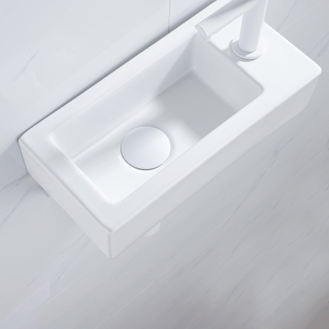 Niet alleen een visueel statement, maar ook praktisch in gebruik. De QeramiQ Fuente Fonteinset wordt geleverd met een afvoerplug voor een efficiënte afvoer van water. Het compacte formaat van 37.5x18.5x9cm maakt het ideaal voor kleine badkamers of toiletruimtes, waar ruimtebesparing essentieel is.