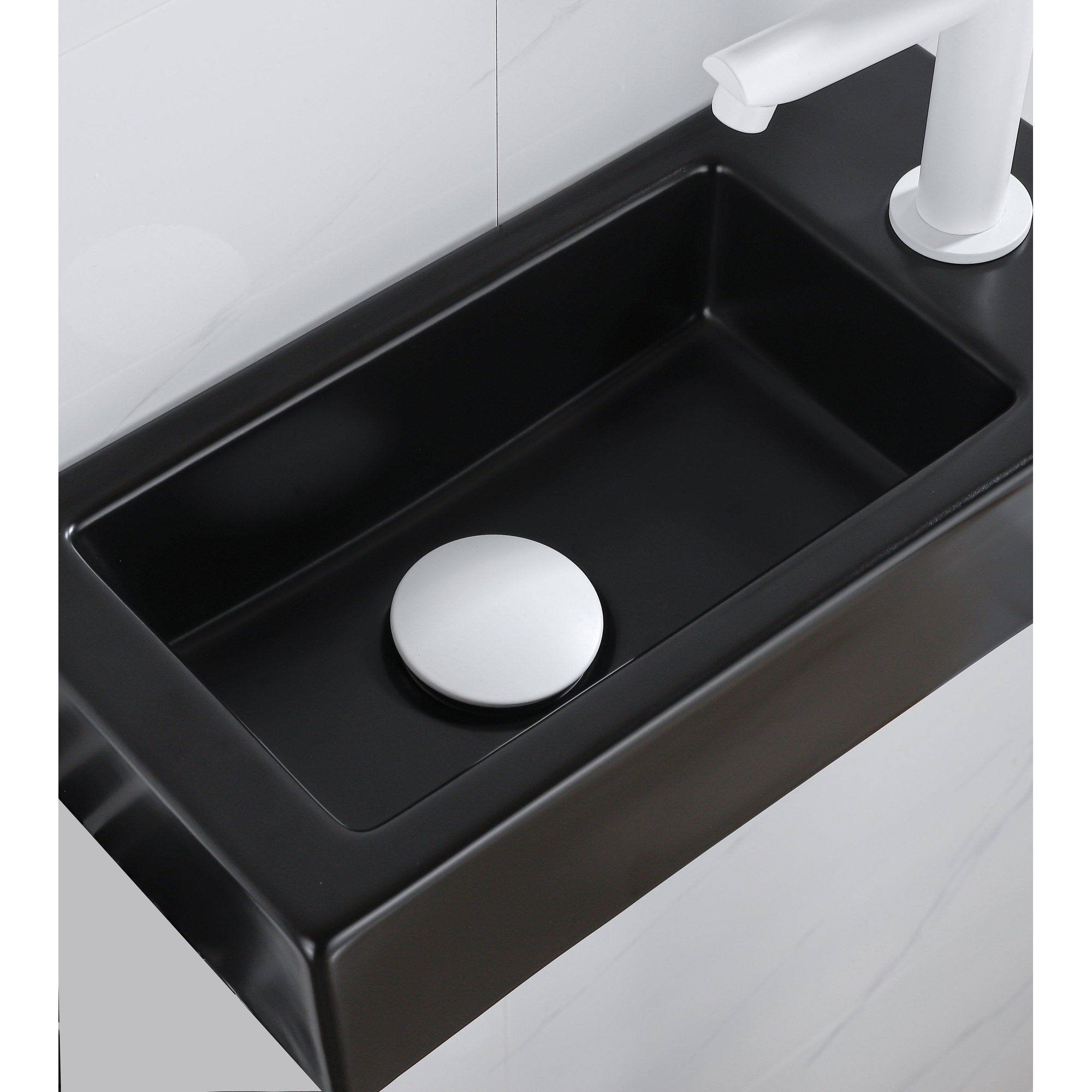 QeramiQ Fuente Fonteinset - 37.5x18.5x9cm - keramiek - kraangat rechts - fonteinkraan mat wit - afvoerplug - verlaagd sifon - Mat Zwart