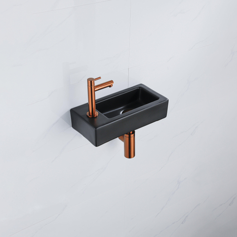 Met zijn elegante ontwerp en aandacht voor detail voegt de QeramiQ Fuente Fonteinset een vleugje verfijning toe aan elke badkamer. Het mat zwarte keramiek straalt klasse uit, terwijl de geborsteld koperen fonteinkraan een vleugje luxe toevoegt aan het geheel.