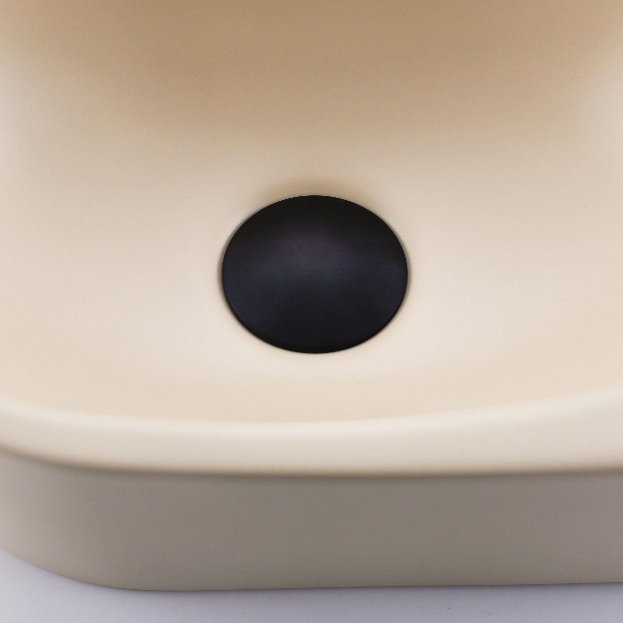 QeramiQ Fuente Fonteinset - 40x21.5x12cm - rechts - glad - halfrond - 1 kraangat - keramiek - fonteinkraan zwart mat - afvoerplug - verlaagd sifon - beige