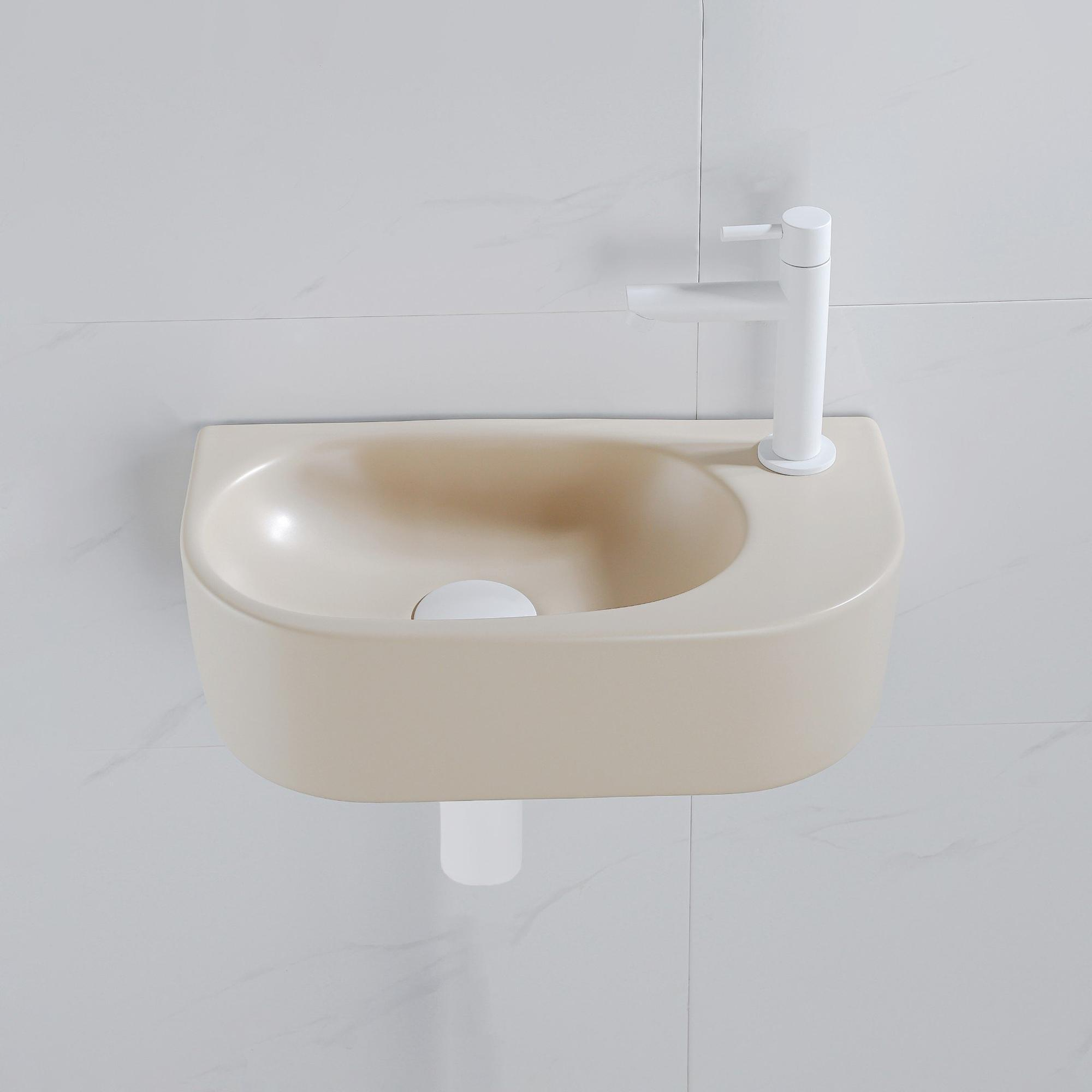 QeramiQ Fuente Fonteinset - 40x21.5x12cm - rechts - glad - halfrond - 1 kraangat - keramiek - fonteinkraan wit mat - afvoerplug - verlaagd sifon - beige