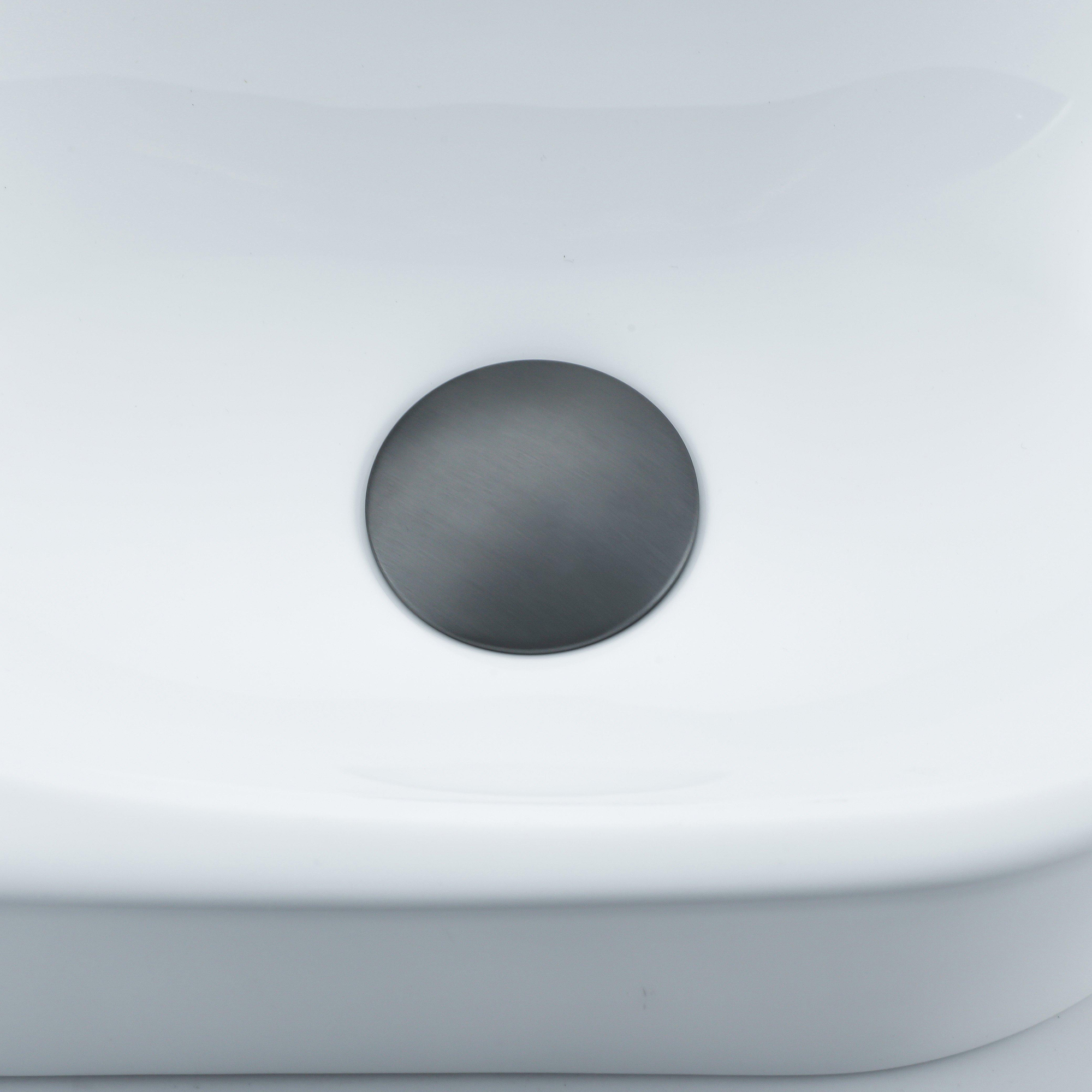 QeramiQ Fuente Fonteinset - 40x21.5x12cm - links - glad - halfrond - 1 kraangat - keramiek - fonteinkraan gunmetal - afvoerplug - verlaagd sifon - wit glans