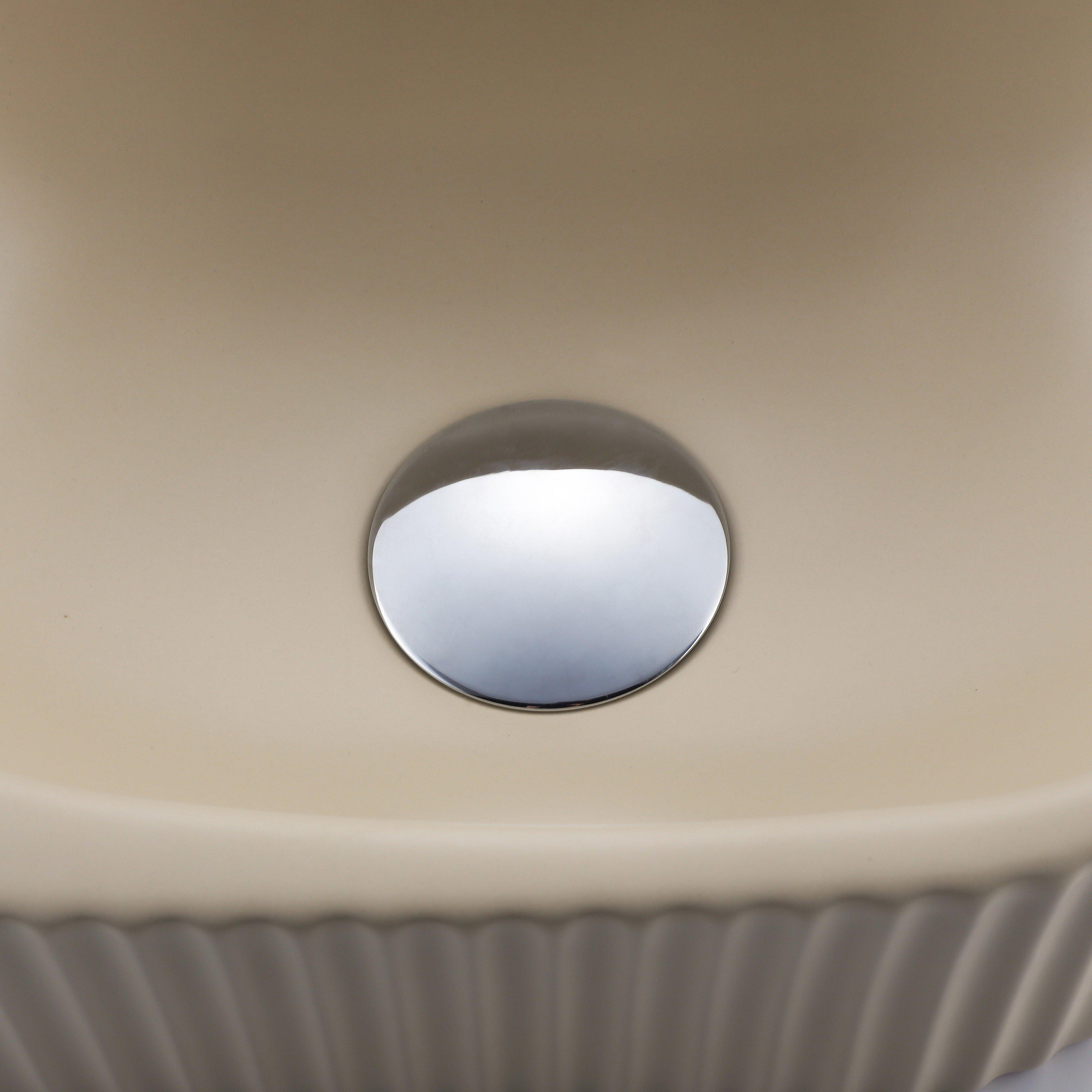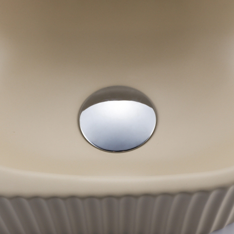 QeramiQ Fuente Fonteinset - 40x21.5x12cm - links - geribbeld - halfrond - 1 kraangat - keramiek - fonteinkraan chroom - afvoerplug - verlaagd sifon - beige