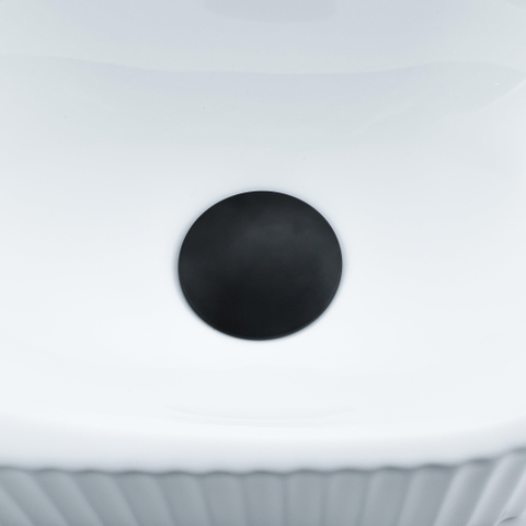 De QeramiQ Fuente Fonteinset straalt elegantie en stijl uit met zijn geribbelde halfronde ontwerp en zwarte mat fonteinkraan. Het keramische materiaal voegt een vleugje luxe toe aan de ruimte, terwijl het enkele kraangat zorgt voor gemak en functionaliteit. Deze fonteinset is een blikvanger in elke moderne badkamer.