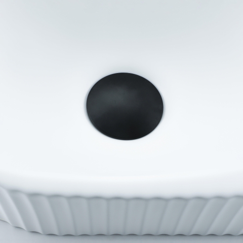 De QeramiQ Fuente Fonteinset straalt elegantie uit met zijn slanke vorm en verfijnde afwerking. Het geribbelde design voegt een subtiele textuur toe aan het geheel, terwijl het halfronde ontwerp een moderne touch geeft. Het zwarte matte fonteinkraan contrasteert prachtig met het witte keramiek, waardoor een tijdloze en chique uitstraling ontstaat.