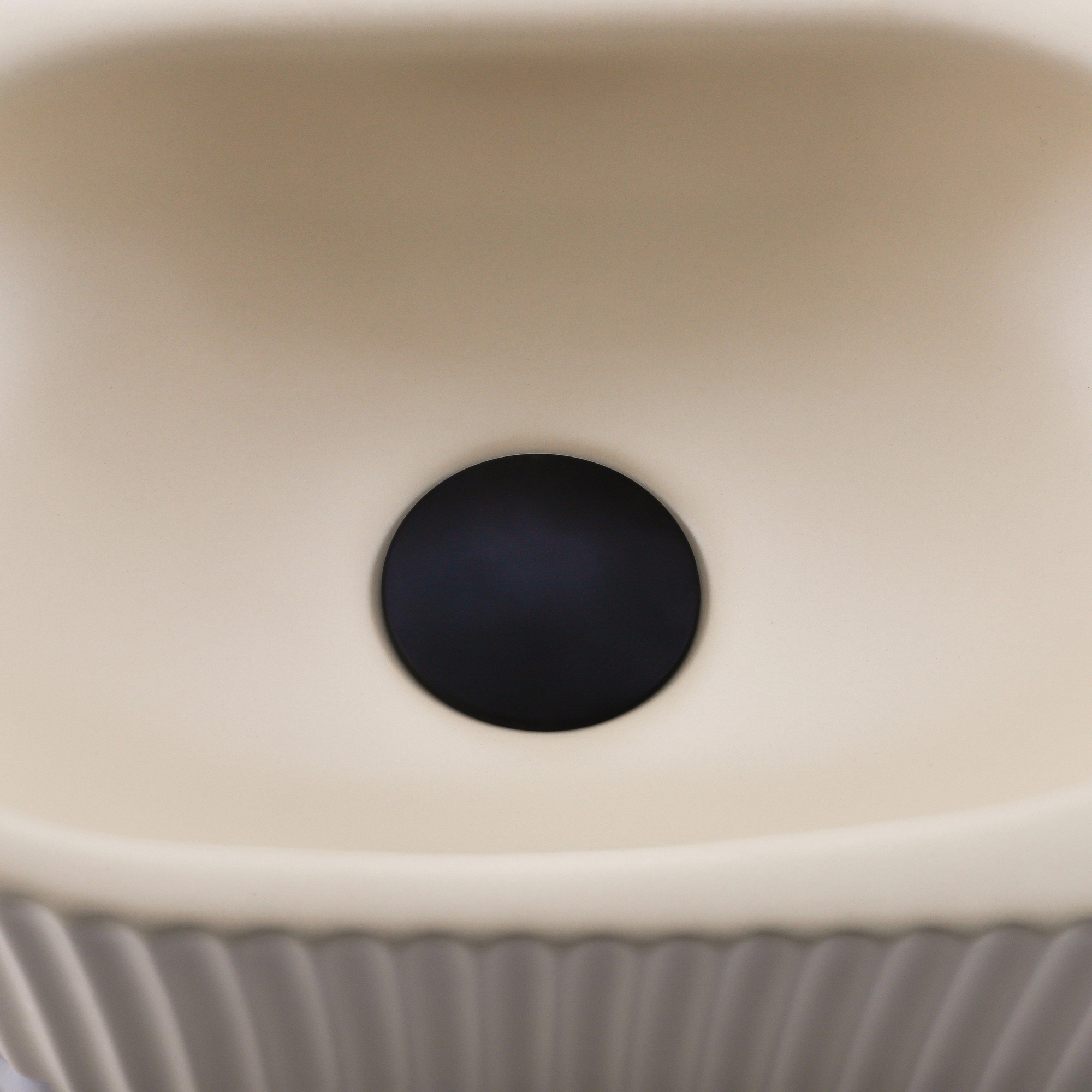 QeramiQ Fuente Fonteinset - 40x21.5x12cm - rechts - geribbeld - halfrond - 1 kraangat - keramiek - fonteinkraan zwart mat - afvoerplug - verlaagd sifon - beige