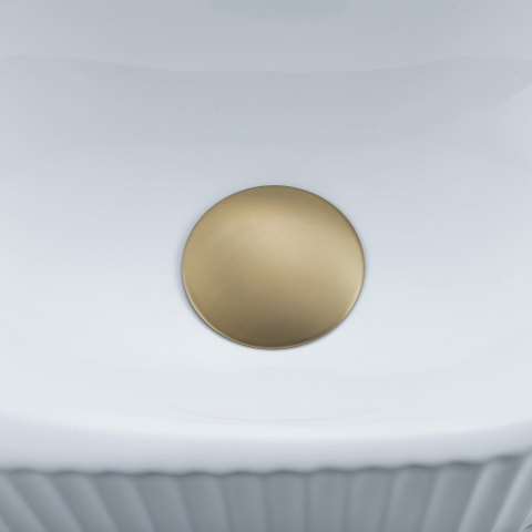 De QeramiQ Fuente Fonteinset straalt elegantie uit met zijn geribbelde halfronde vorm en glanzend witte afwerking. Het keramische materiaal voegt een vleugje luxe toe aan de ruimte, terwijl het geborsteld messing van de fonteinkraan een subtiele glans geeft. Deze fonteinset is een ware blikvanger in elke badkamer.