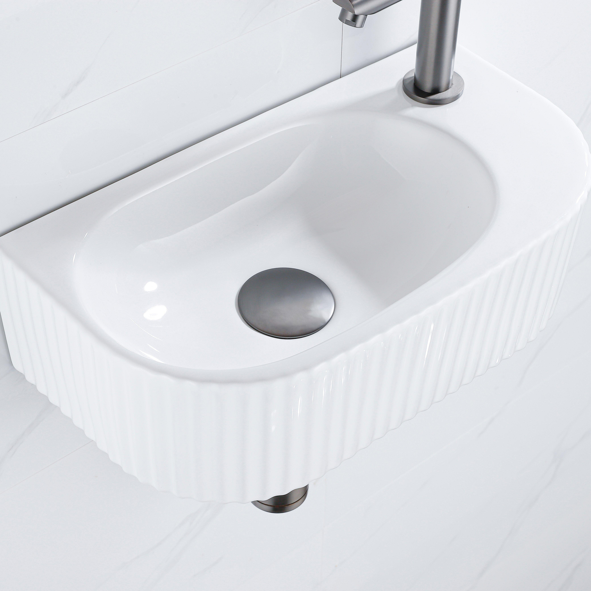 QeramiQ Blend Fonteinset - 40x21.5x12cm - rechts - geribbeld - halfrond - 1 kraangat - keramiek - fonteinkraan gunmetal - afvoerplug - verlaagd sifon - wit glans