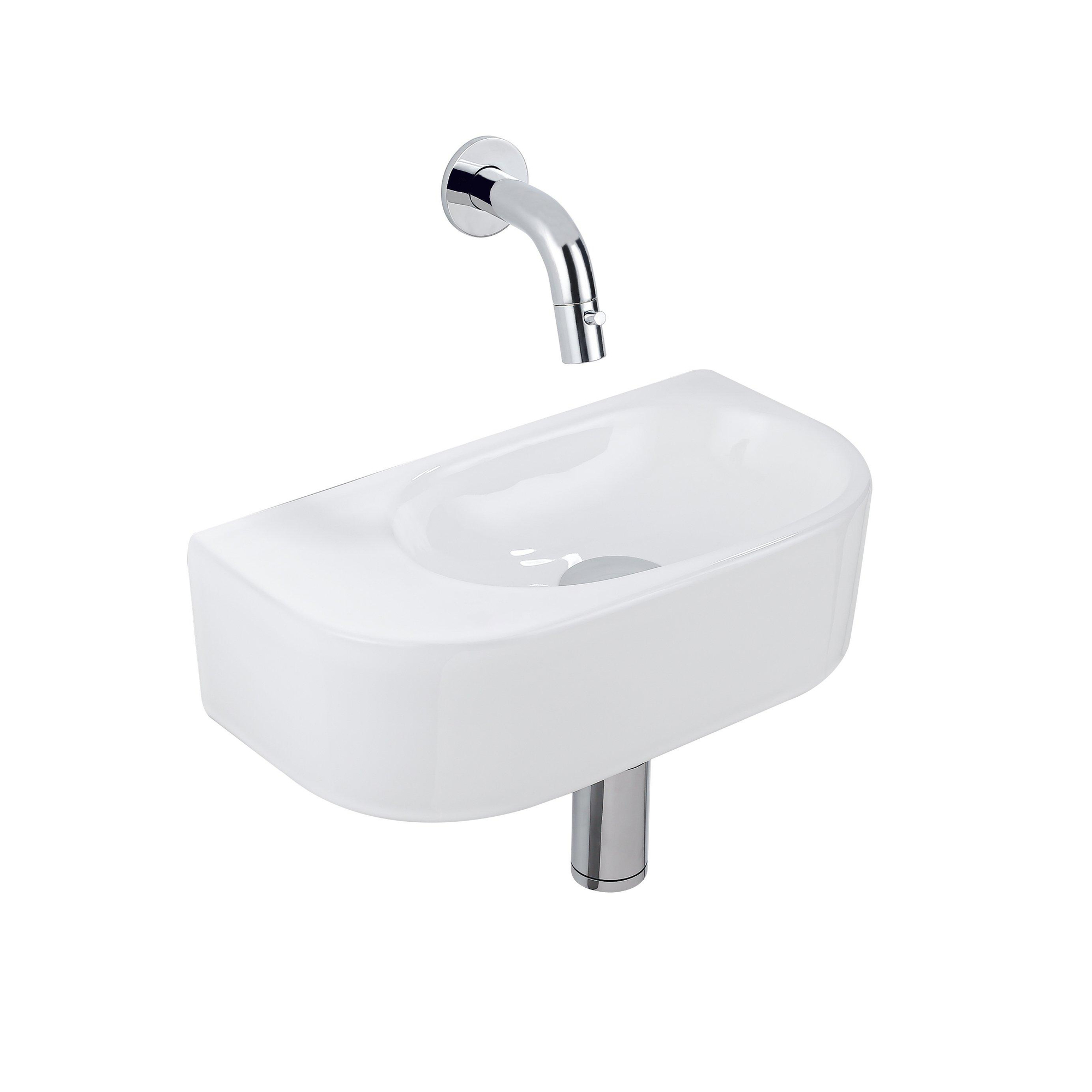 QeramiQ Fuente Fonteinset - 40x21.5x12cm - glad - halfrond - keramiek - fonteinkraan chroom - afvoerplug - verlaagd sifon - wit glans