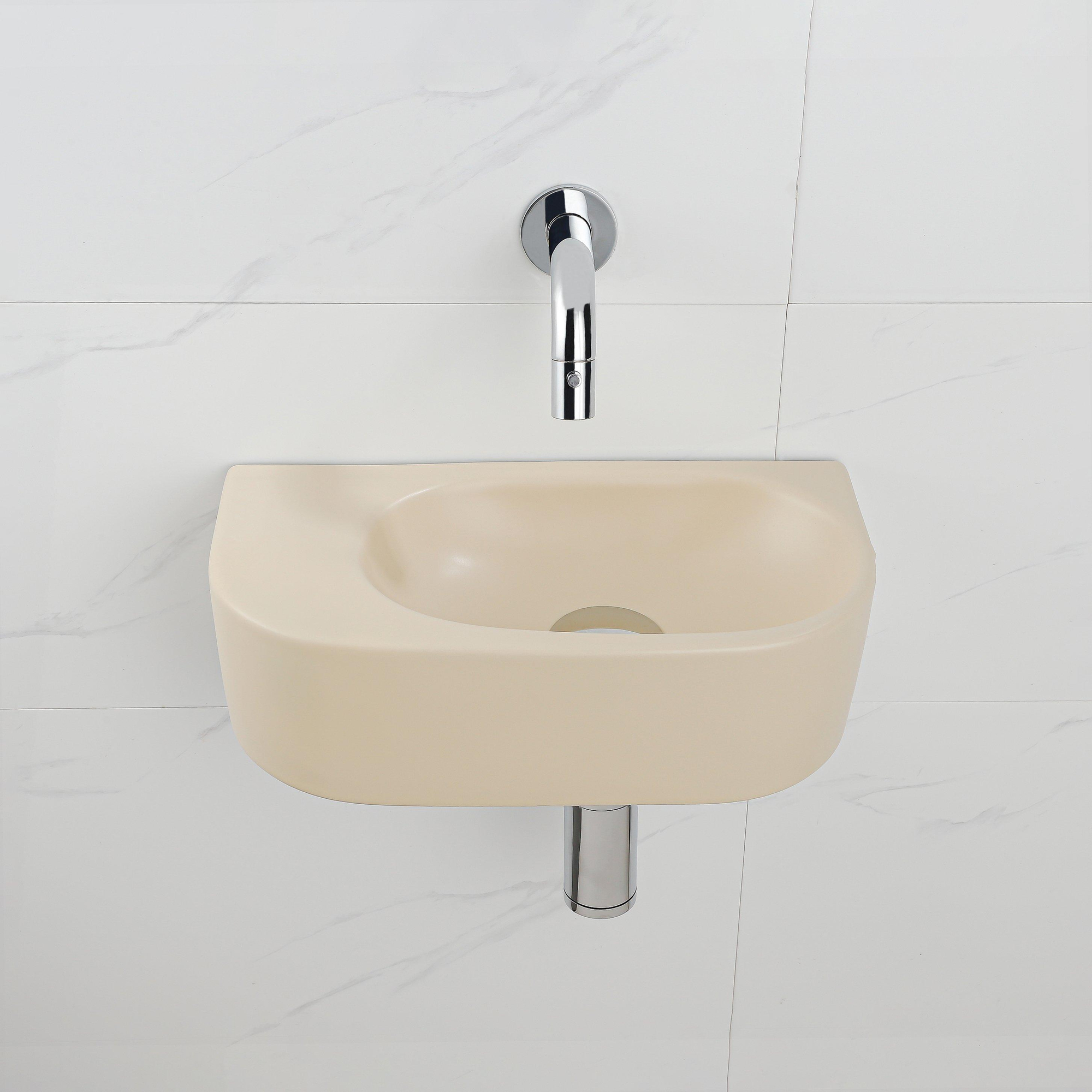 QeramiQ Fuente Fonteinset - 40x21.5x12cm - glad - halfrond - zonder kraangat - keramiek - fonteinkraan chroom - afvoerplug - verlaagd sifon - beige