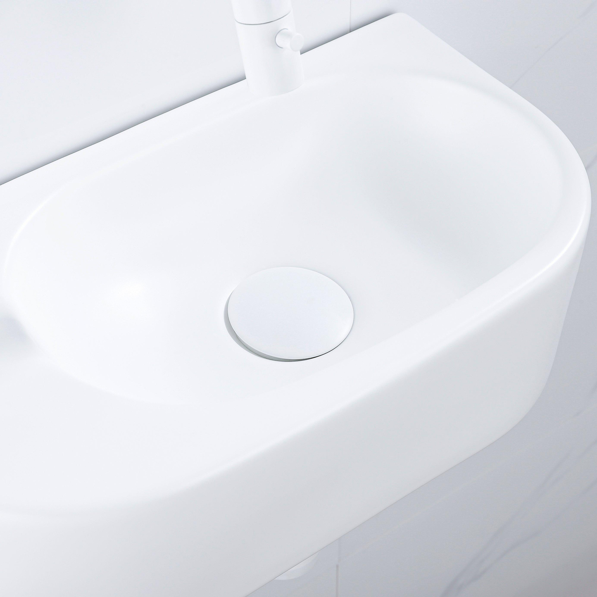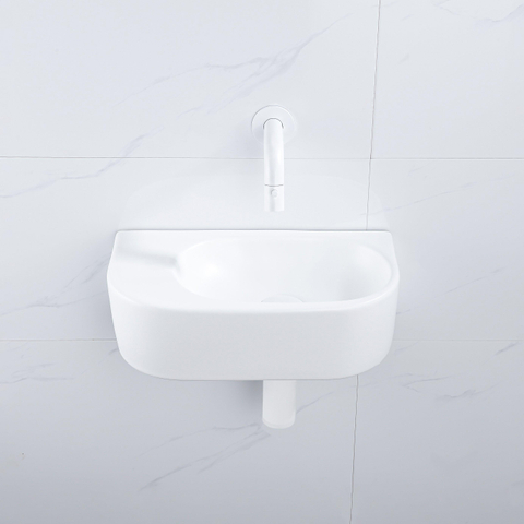 QeramiQ Fuente Fonteinset - 40x21.5x12cm - glad - halfrond - keramiek - fonteinkraan wit mat - afvoerplug - verlaagd sifon - wit mat