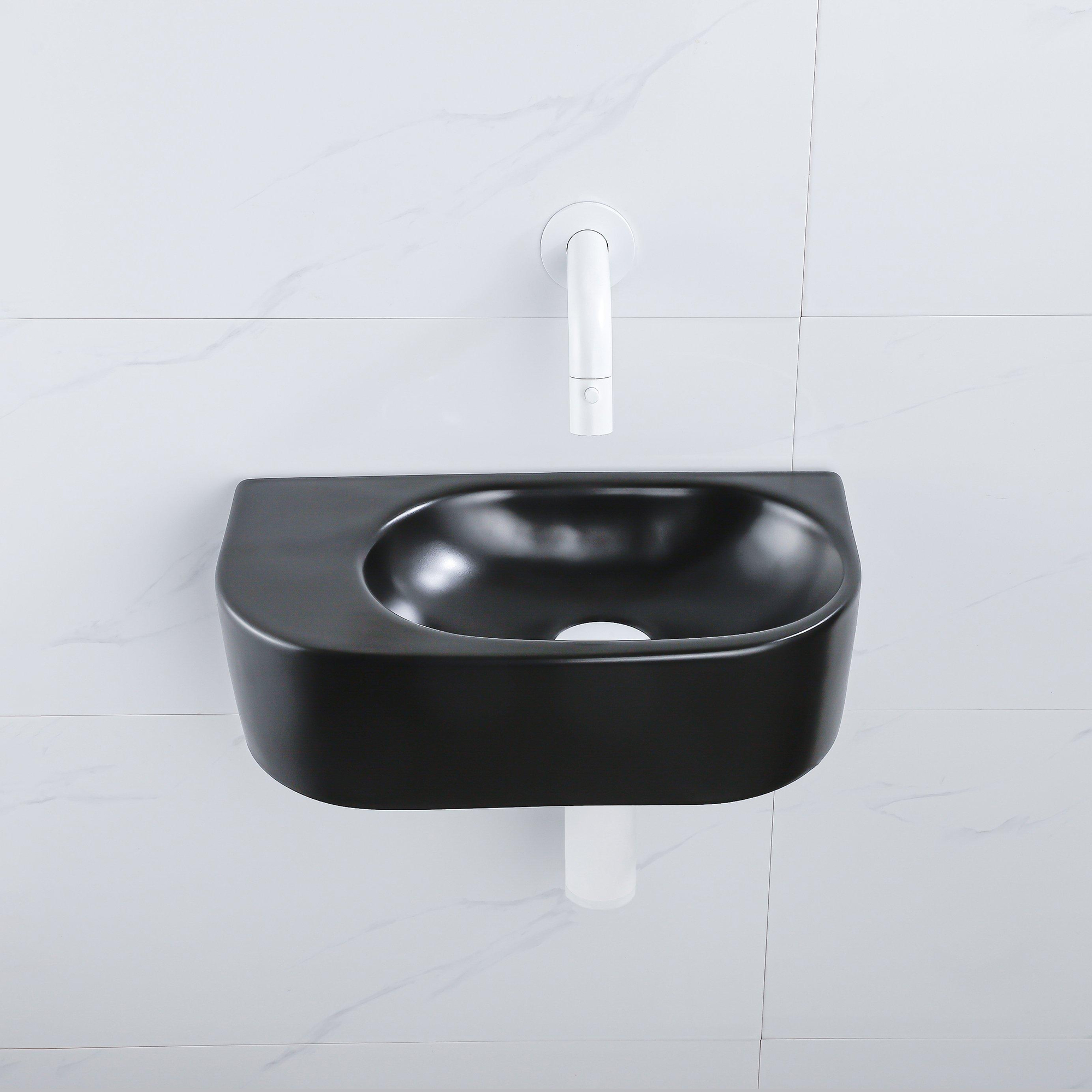 QeramiQ Fuente Fonteinset - 40x21.5x12cm - glad - halfrond - keramiek - fonteinkraan wit mat - afvoerplug - verlaagd sifon - zwart mat SW1233092