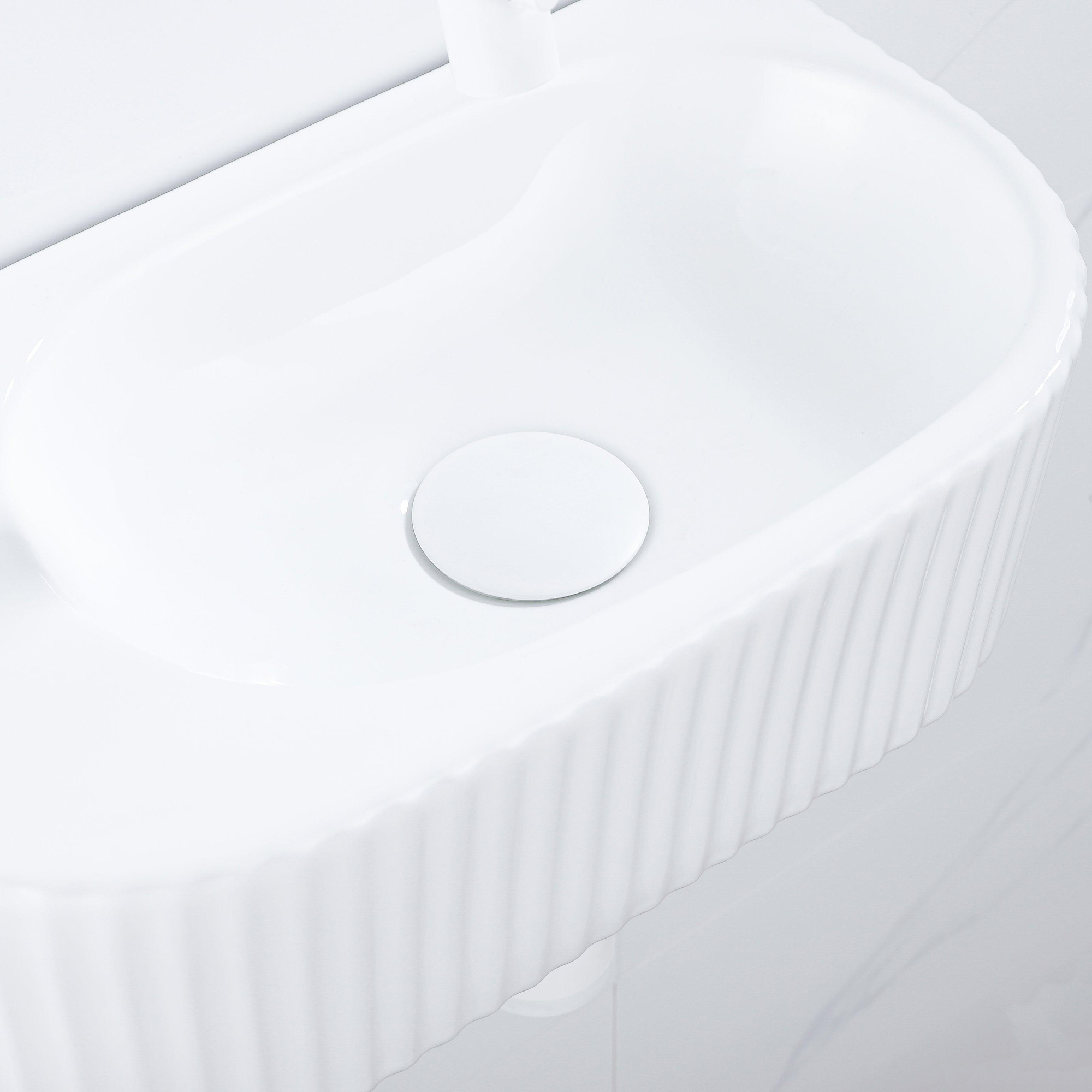Kleur fontein: Wit glans - Structuur fontein: Geribbeld - Plaats wasbak: - Kleur kraan: Wit mat (€ 169,99 )