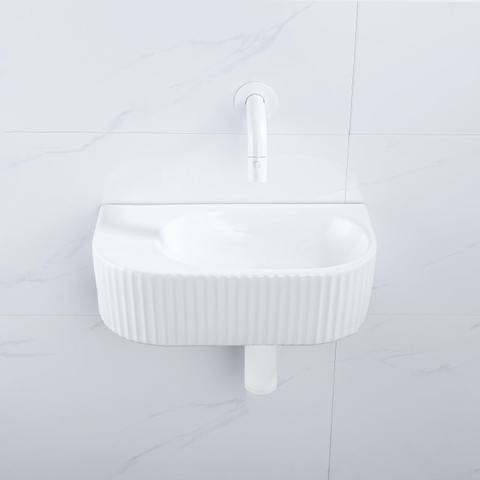 Kleur fontein: Wit mat - Structuur fontein: Geribbeld - Plaats wasbak: Links - Kleur kraan: Wit mat (€ 169,99 )