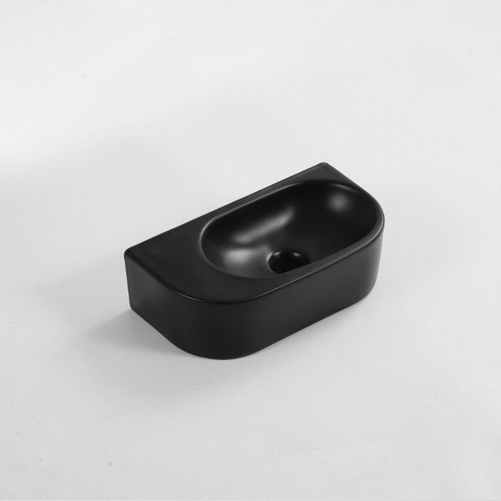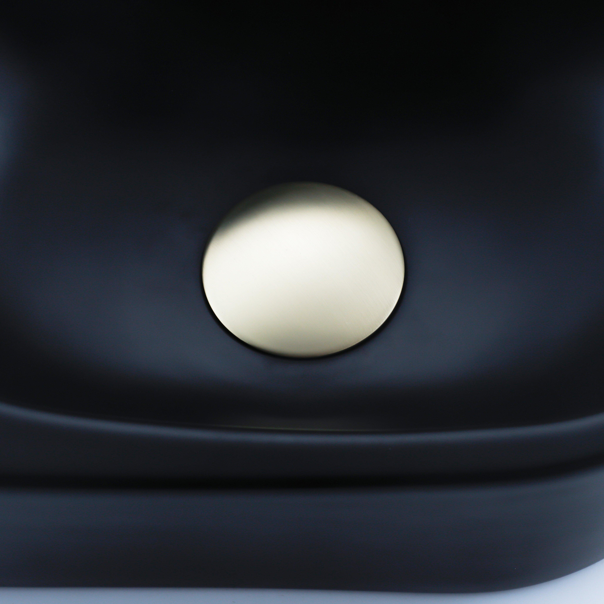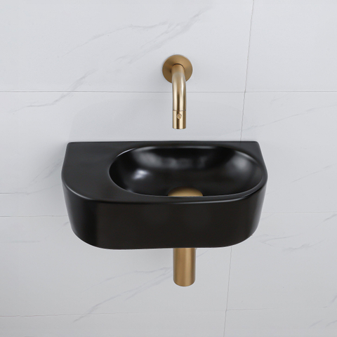 QeramiQ Fuente Fonteinset - 40x21.5x12cm - glad - halfrond - keramiek - fonteinkraan geborsteld messing - afvoerplug - verlaagd sifon - zwart mat
