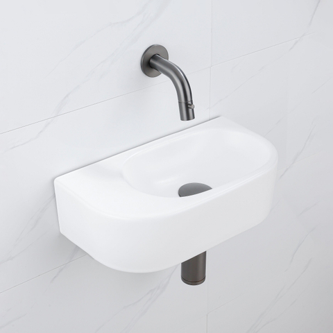 In de wereld van verfijnde badkamerinrichting is er een product dat de perfecte combinatie van elegantie en functionaliteit belichaamt. Dit prachtig vormgegeven fonteinset brengt een vleugje luxe in elke badkamer. Met zijn gladde halfronde vorm en hoogwaardige keramische constructie straalt dit fonteinset klasse uit. De fonteinkraan in gunmetal voegt een eigentijdse uitstraling toe, terwijl de bijgeleverde afvoerplug en verlaagde sifon zorgen voor een naadloze afwerking. De witte matte afwerking geeft een tijdloze charme aan dit stijlvolle fonteinset.