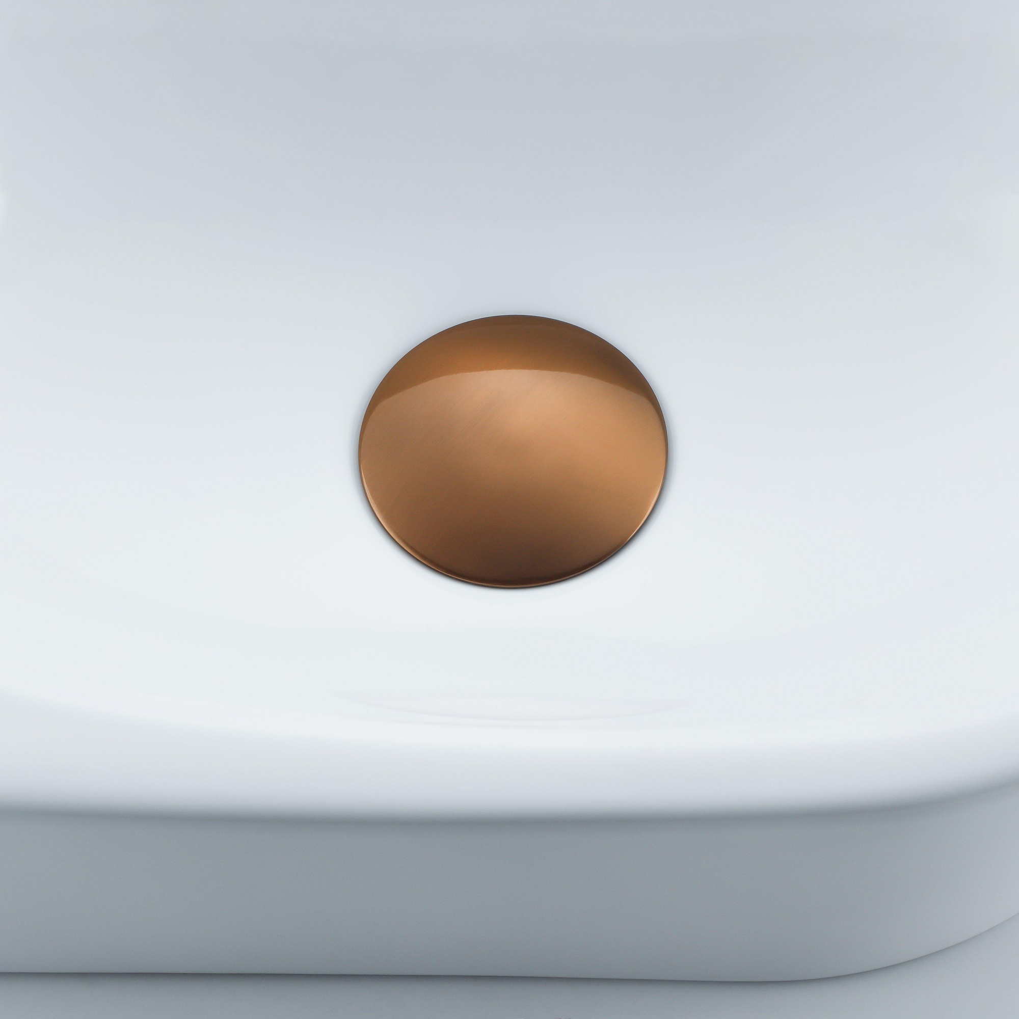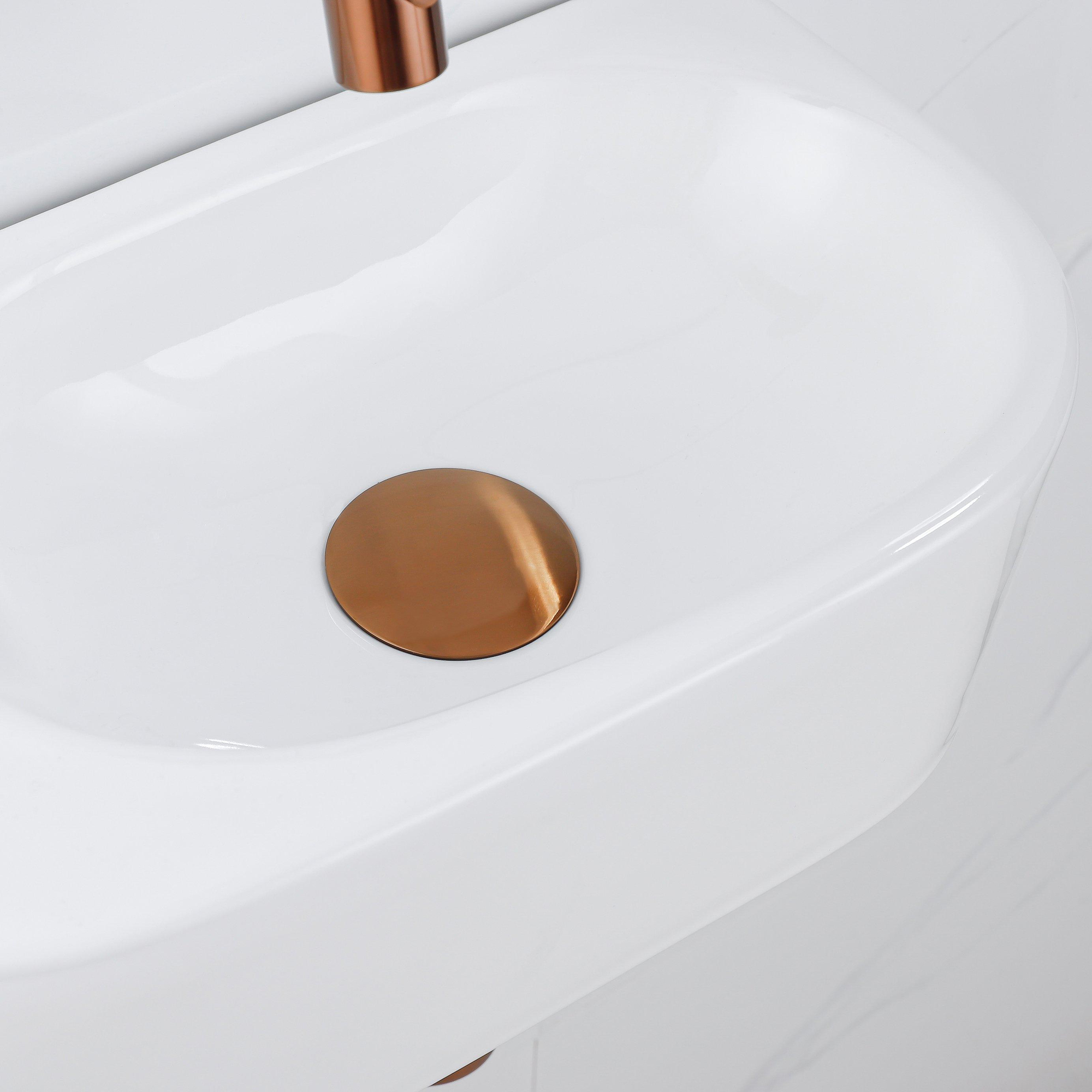 QeramiQ Fuente Fonteinset - 40x21.5x12cm - glad - halfrond - keramiek - fonteinkraan geborsteld koper - afvoerplug - verlaagd sifon - wit glans
