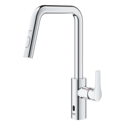 Ontdek de perfecte combinatie van stijl en functionaliteit met deze innovatieve keukenmengkraan. Met zijn elegante ontwerp en geavanceerde functies tilt dit product jouw keuken naar een hoger niveau van luxe en gemak. Laat je verrassen door de Grohe Eurosmart E Hybrid keukenmengkraan U-uitloop dual spray!